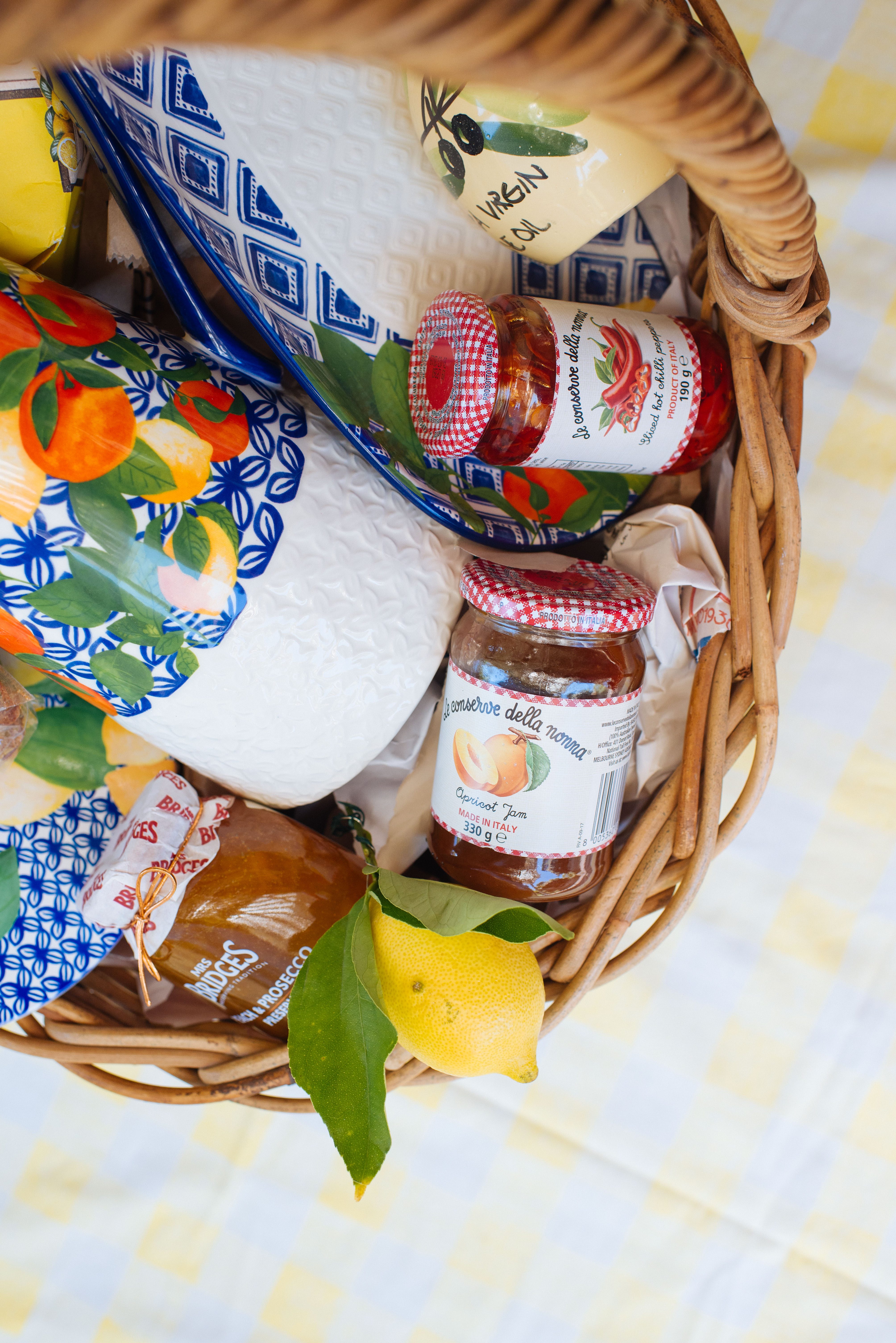 Like a DIY hamper! You may remember my fave coffee box gift idea from last year, and it was such a hit that this year we decided to create another idea like this. The basket hamper! It’s a simple project that, whilst being easy to execute, has serious wow factor and can be put together last minute. This year I was inspired by this stunning collection from Maxwell & Williams, and a love of all things inspired by the Italian coast. But the best thing about this idea? You can choose your theme depending on what the receiver loves, making it an infinitely adaptable (and personal) gift. Read on for more!