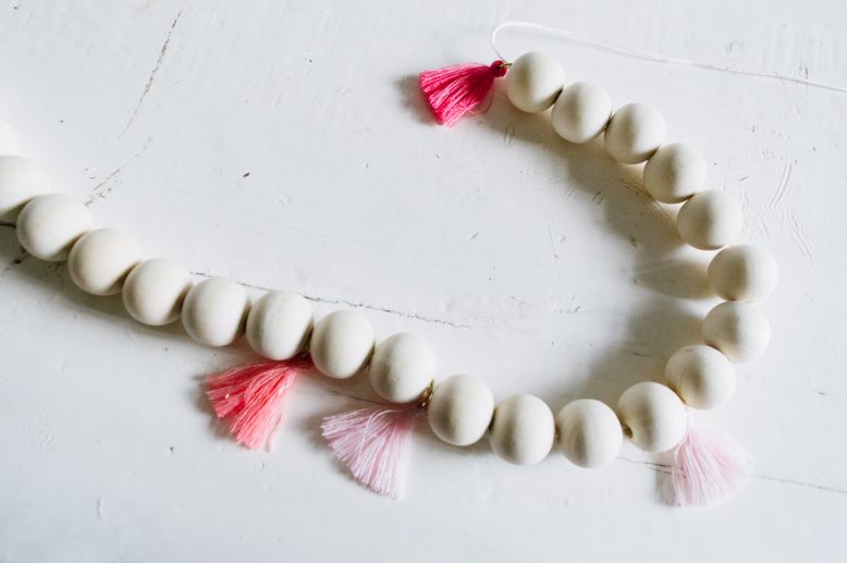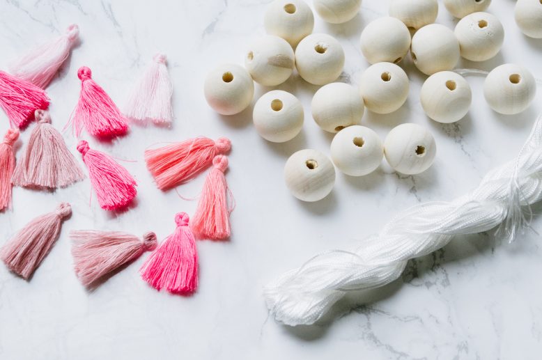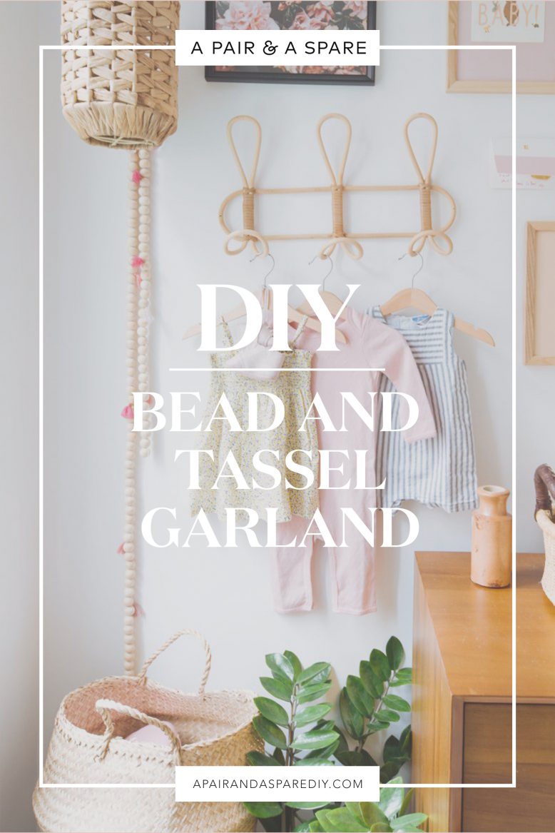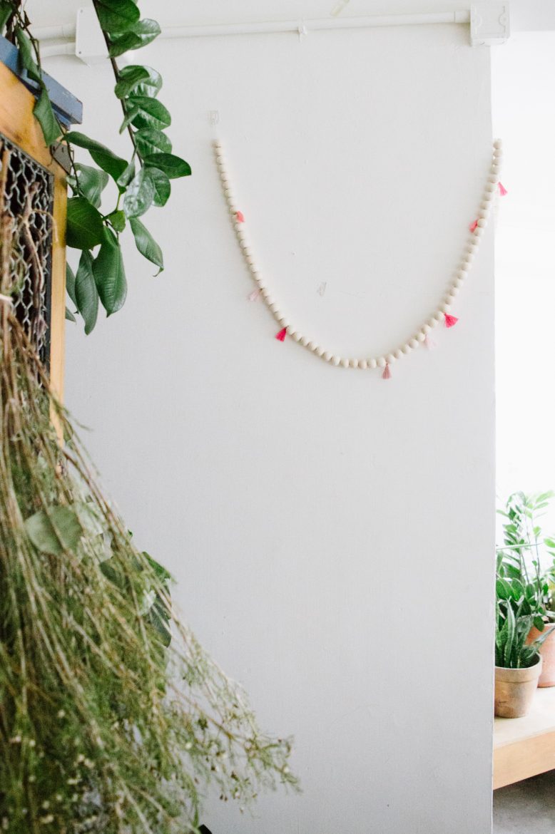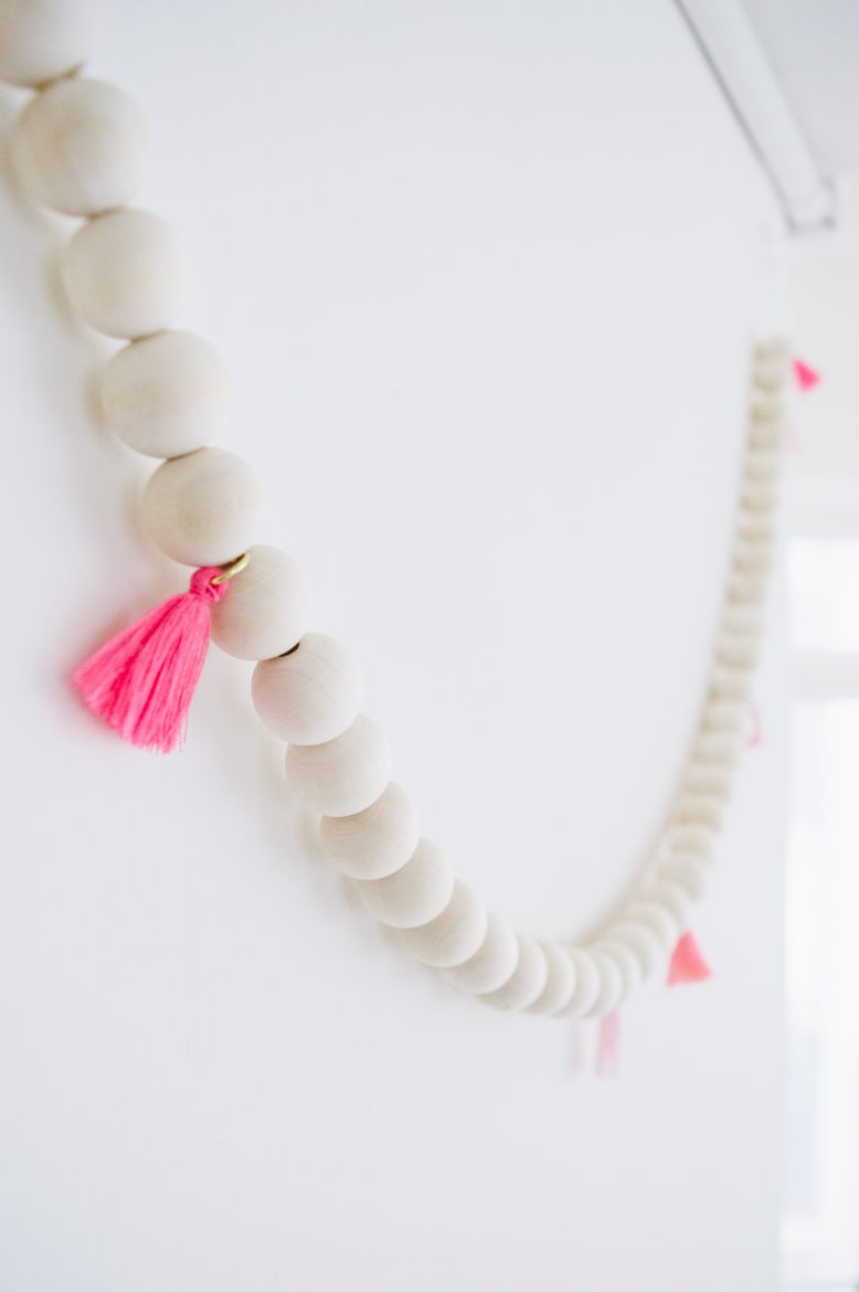 I’ve been looking for a few decor pieces to add to Frankie’s gallery wall as details, and thought a beaded garland would be perfect. Turns out this easy DIY bead and tassel garland is a really versatile piece because you can hang it on the wall, drape it on shelves or use it to hang things off. Perfect!
