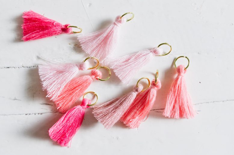 We didn't want the tassels to be squashed in between the beads and appear even shorter than they already are, so we added some gold hoops for them to hang from. This step is optional though.