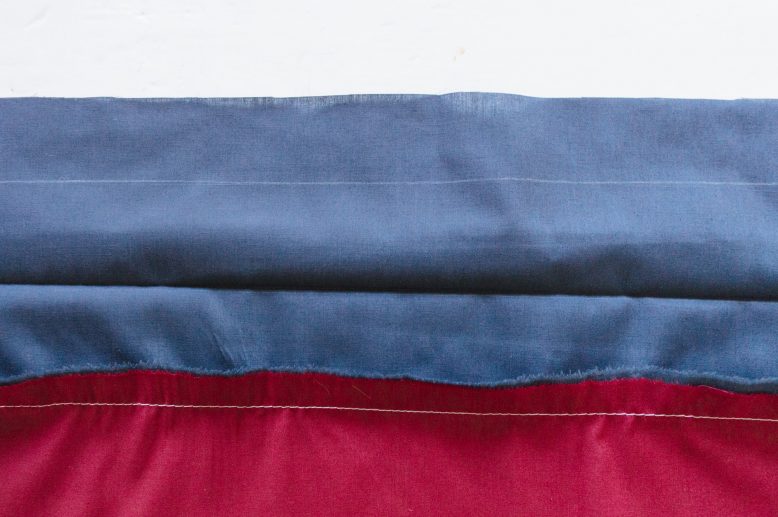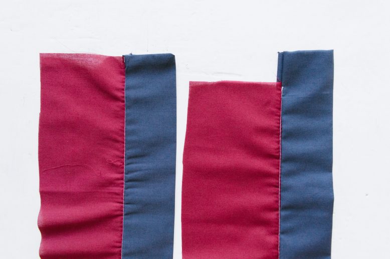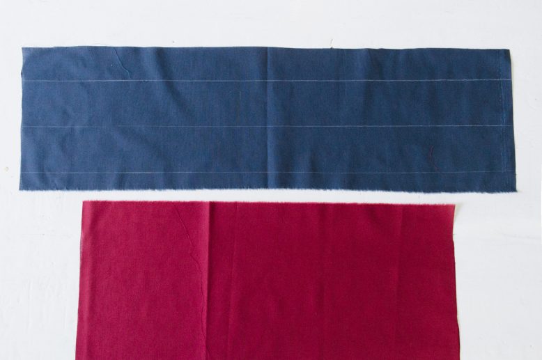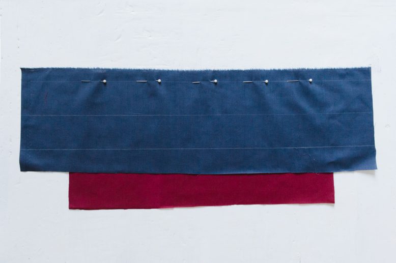 The blue piece of fabric represents my waistband or cuff piece, and the red will be my sleeve or pants/skirt.