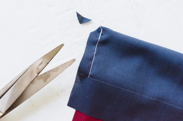 Cut off the excess on the sides, and snip off the fabric in the corner.