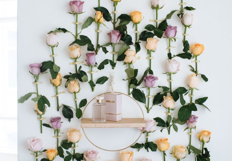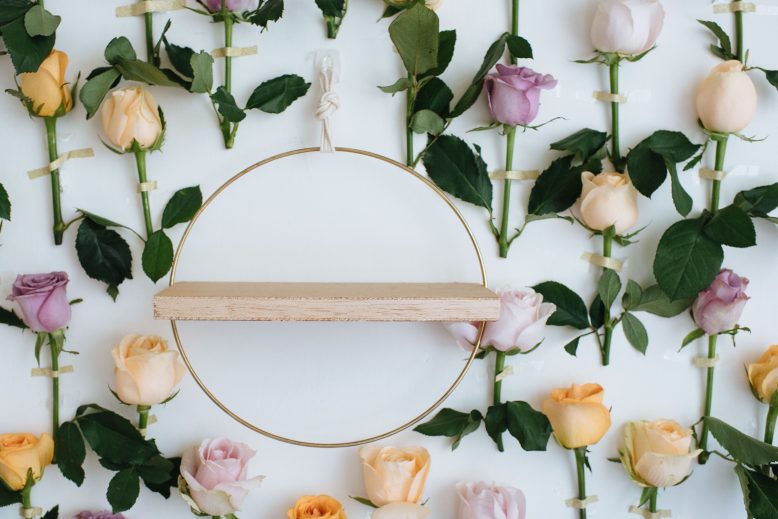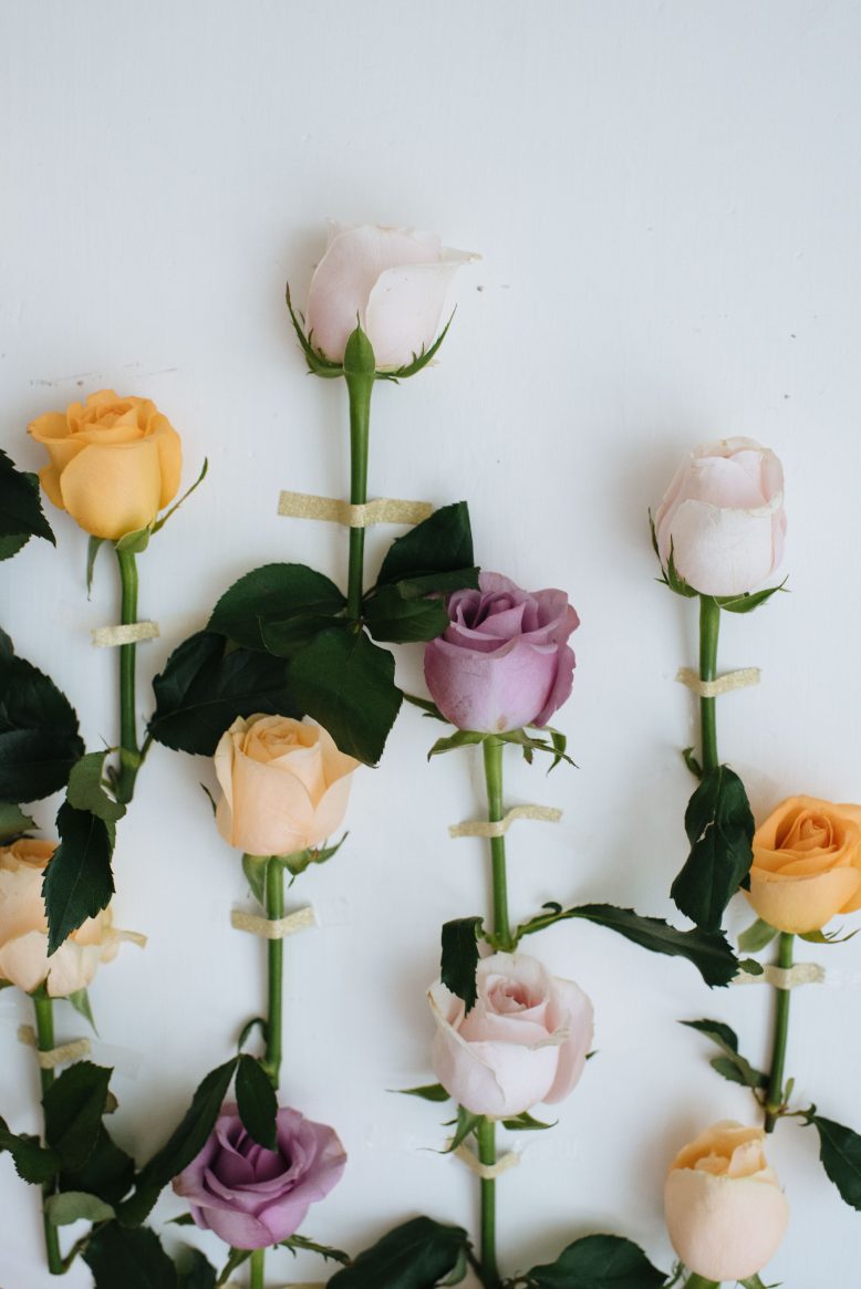 We had some gorgeous roses left over from a project we did in the studio with Stella, so we decided to put them on the wall. It was really easy to make this installation, just using some washi tape. I’m excited for them to dry on the wall like this! And I’m considering adding a mirror in the middle, what do you think?