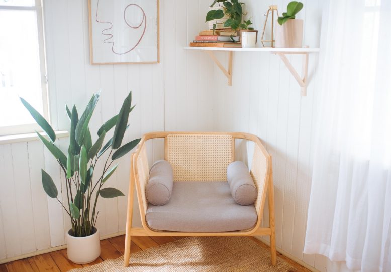 To give a corner purpose, you need to add something that makes a bit of a statement. Obviously this very beautiful chair from Trit House I added to the space is just perfect. I mean, look at it! With out a doubt a statement chair is a great option and will give your space purpose and focus, but equally a set of shelves or a bench can really change the feel.