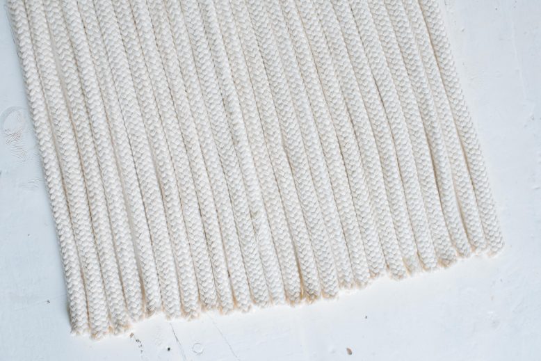 - The first thing you’ll want to do is cut all your rope pieces to size. I measured them up to 65 cm long each.