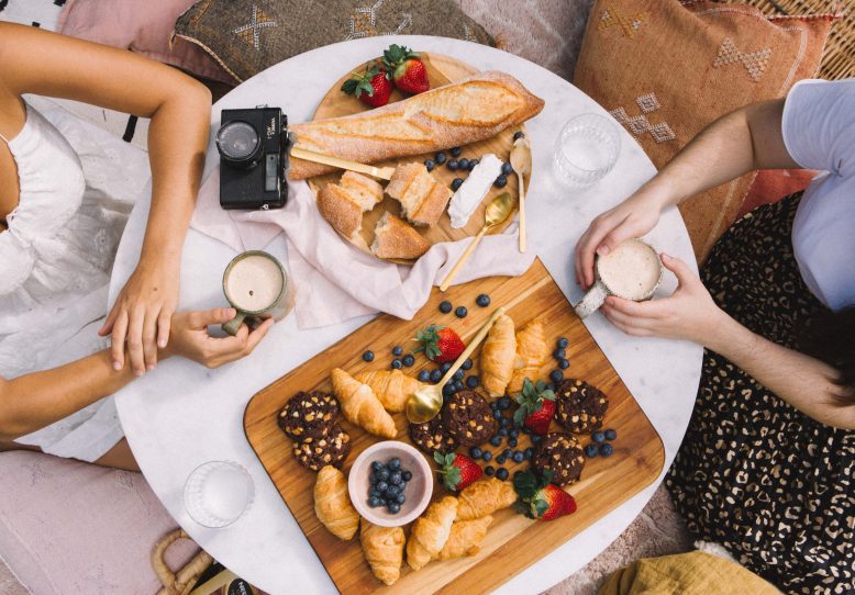 So you COULD eat on your lap and laze around. But if you want to take it up a notch, a low table, such as a coffee table, is where it’s at. It turns what would be a casual, and lets be honest, uncomfortable affair into something you would be happy to stay at all day.