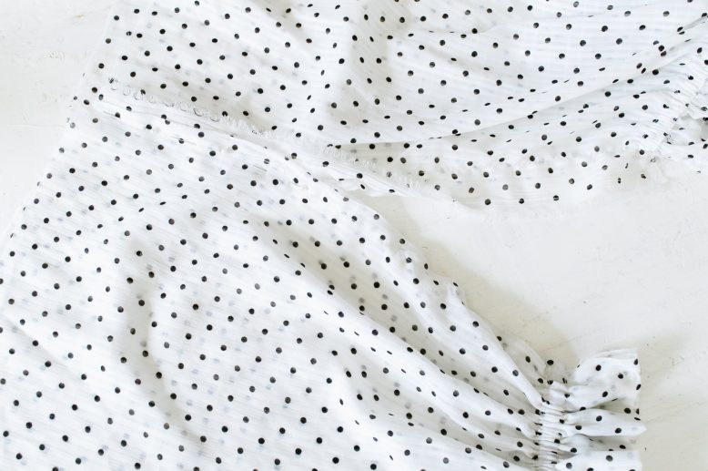 For this style I chose a light polka dot chiffon which has a really nice drape and swishes around you when you walk. I love it!
