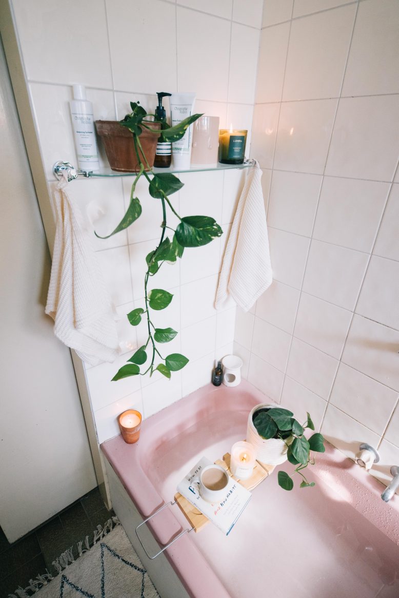 Let’s be real, the place that most rentals really fail, is the bathroom! I mean, carpet and lighting can be tricky in living spaces, but there are just SO many things that can go wrong in bathrooms – tiles, taps etc. However, one thing I have found is that it’s actually quite easy to give your bathroom a freshen up, with some well placed decor, mirrors and textiles.