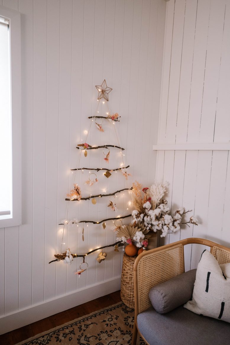 It’s the first time we will spend Christmas in our house (we’re hosting this year!) and whilst part of my was excited to get a real tree and decorate it with Frankie, I just loved the branch one I made last year. It was practical, sustainable and pretty! So I had to make a new version. You’ll remember the original from last year (see the tutorial here).