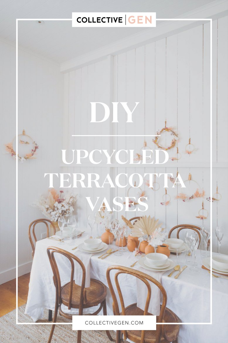 We’re hosting Christmas this year in our house for the first time. Last year we had it at the beach with my family, but this year it’s all us. And I’m pretty excited! And a little bit nervous. But that’s the silly season for you isn’t it? This Christmas I really wanted to reduce my ecological footprint, but of course I still wanted the house to feel festive and get creative. Which is why I love these up cycled terracotta vases! Because they look great, and are made form secondhand finds. The best part about this was picking all the ugly ceramics that were going to get an overhaul! I visited my local St Vinnies (an Australia secondhand store) and found them all in the same place. I bought them for around 10 dollars in total and hilariously the woman serving me said to me ‘Do you LIKE these?’. Which was a fair question because they were pretty ugly, even more so when you looked at them all together. I explained the project I was going to do and she was happy to hear that I wasn’t going to take them home and put them on my table looking like this. She was quite invested by the end!