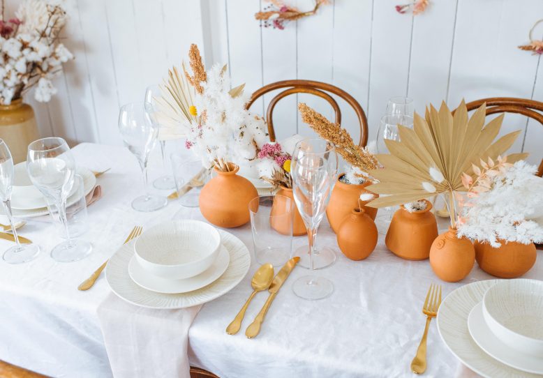 One idea I had is that at the end of the lunch or dinner, your guests can take a vase home with them. You’ll officially be the best host around!