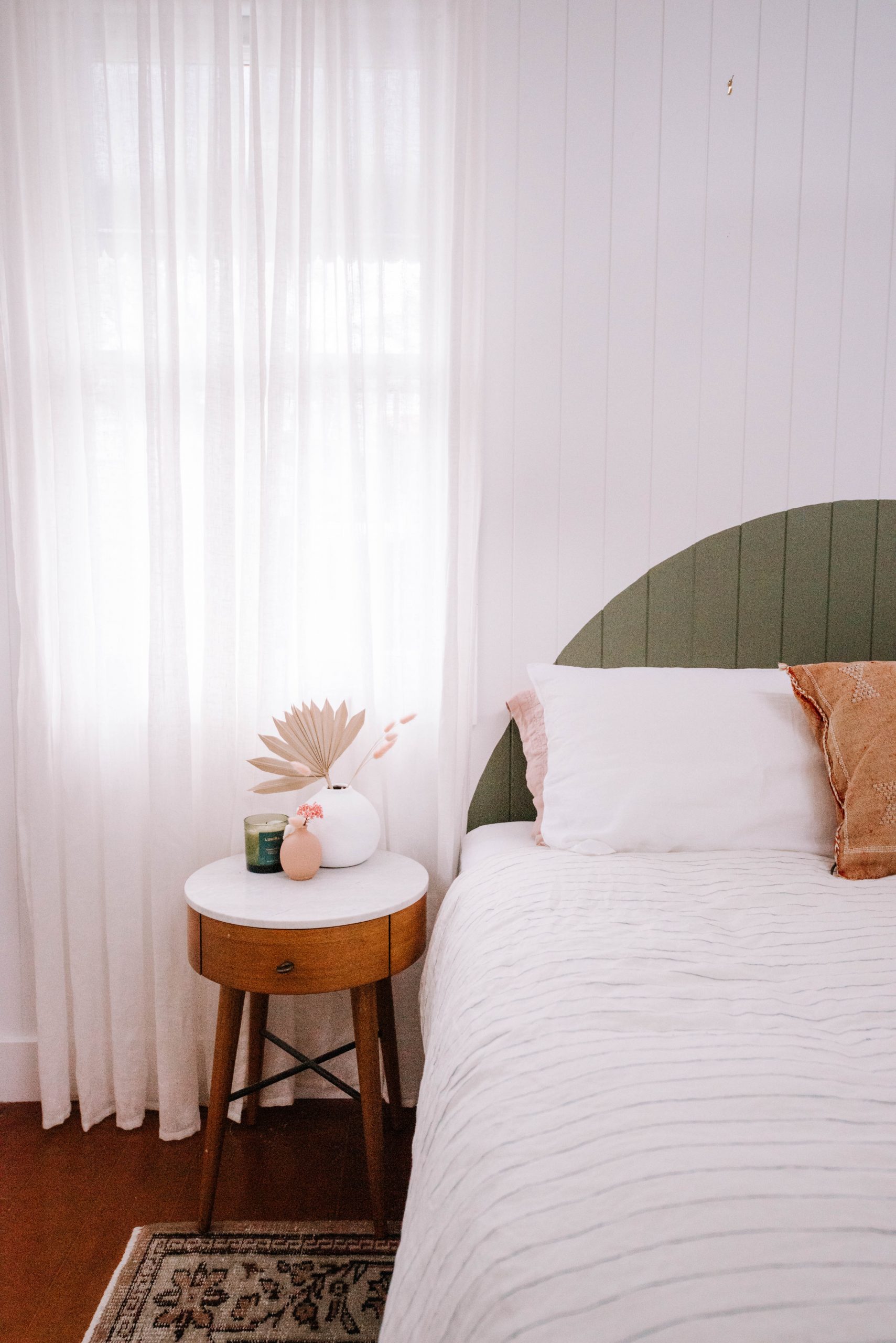 Our home didn’t easily integrate structural arches when we renovated, so I’ve since set about adding them in the form of paint.  Some might say that there are too many arches in our home now, but I have no complaints! The best part? It’s soooo easy to paint an arch into your space using space paint – on a door, as a shelf or even a headboard!