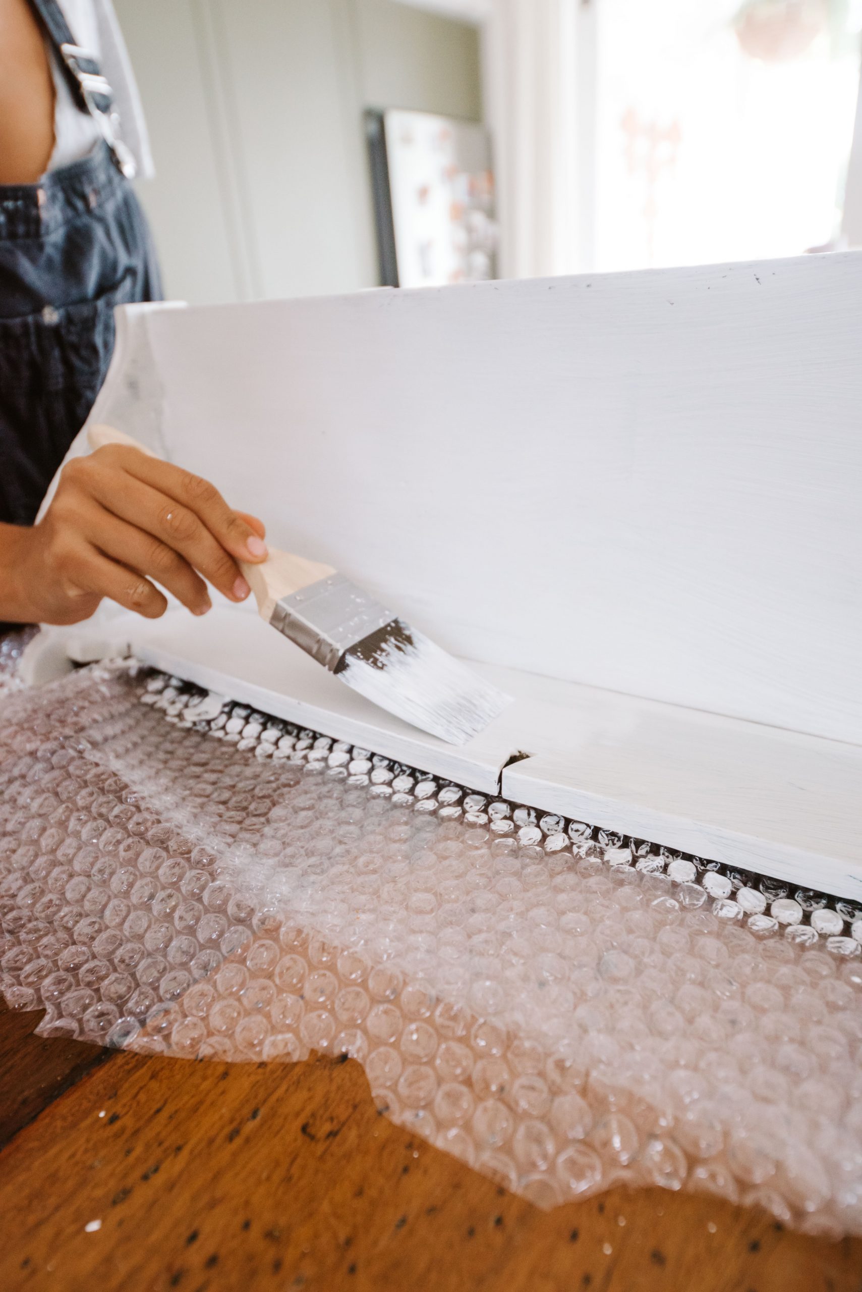 You’ll often find cheap old shelves on classified websites and in thrift stores, and the easiest way to give them a new life is to paint. them. white! Yep it’s the most simple of updates but it honestly works so well. I found these shelves being thrown out on the side of the road, and knew that their shape made them a perfect little update for my office. But the dark brown stain had seen better days, so I decided to paint them. And they came up perfectly! If the wood is varnished, it’s a good idea to use a primer before painting.
