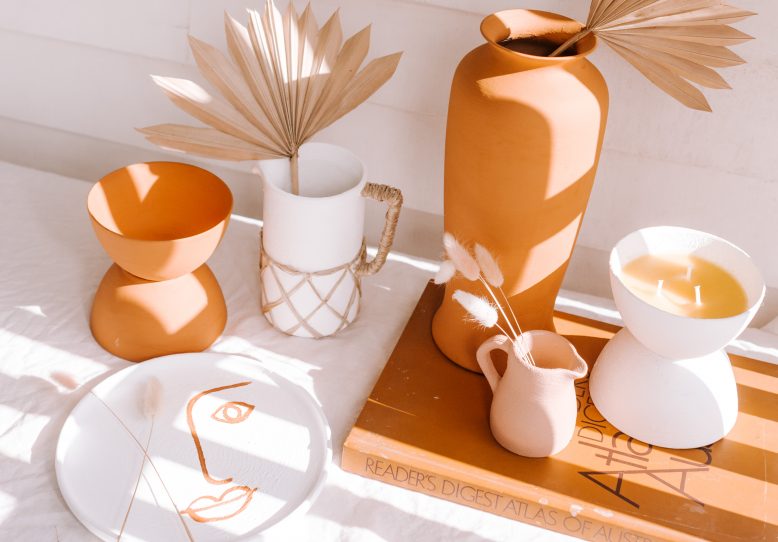 OK so I have to admit that I stuck to my old ways with these projects and used a lot of paint to overhaul them. But as I always say, stick to what you know! Actually, I never say that but you know what I mean. I ended up making two structural vessels (one being a candle), a painted decorative plate (for jewellery storage or for the wall) a raffia embellished jug and two simple painted vases. It’s been a fun week!