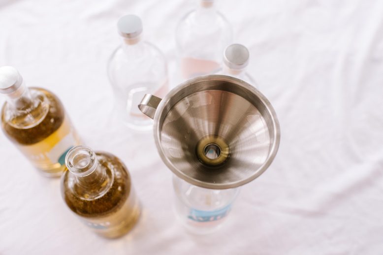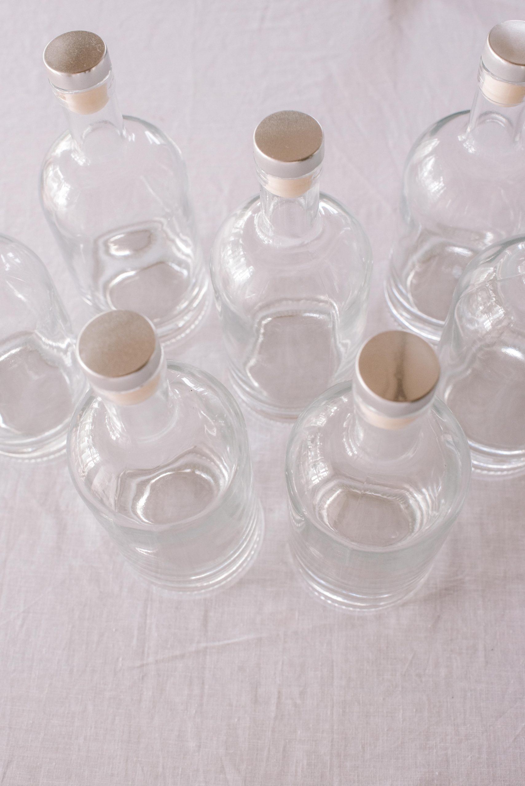 You can use any sort of bottles for this project, but I spent a bit of time looking for elegant ones that would match the style of the design I was going for. I figured that the point of these bottles was that they would be refilled over and over so it made sense to buy something nice (but you can always recycle!). I found that these types of bottles are sold by Home Brew and Spirit Making website – usually called ‘Cork Capped Spirit Bottles’. These are nice ones and the ones I got. Note sometimes they come without a cap which you need to buy separately.