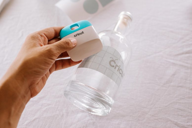 Carefully remove the transfer tape from your design, leaving the design on the bottle.