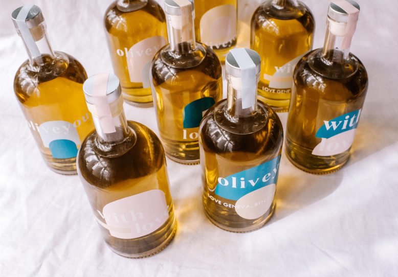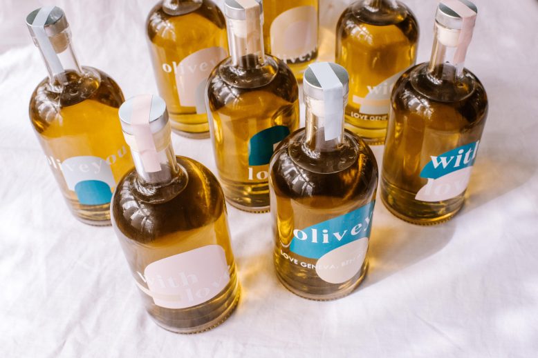 Once all the designs are in place, fill your bottles with olive oil. You can also add some rosemary, chilli or anything else you would like to infuse the oil.