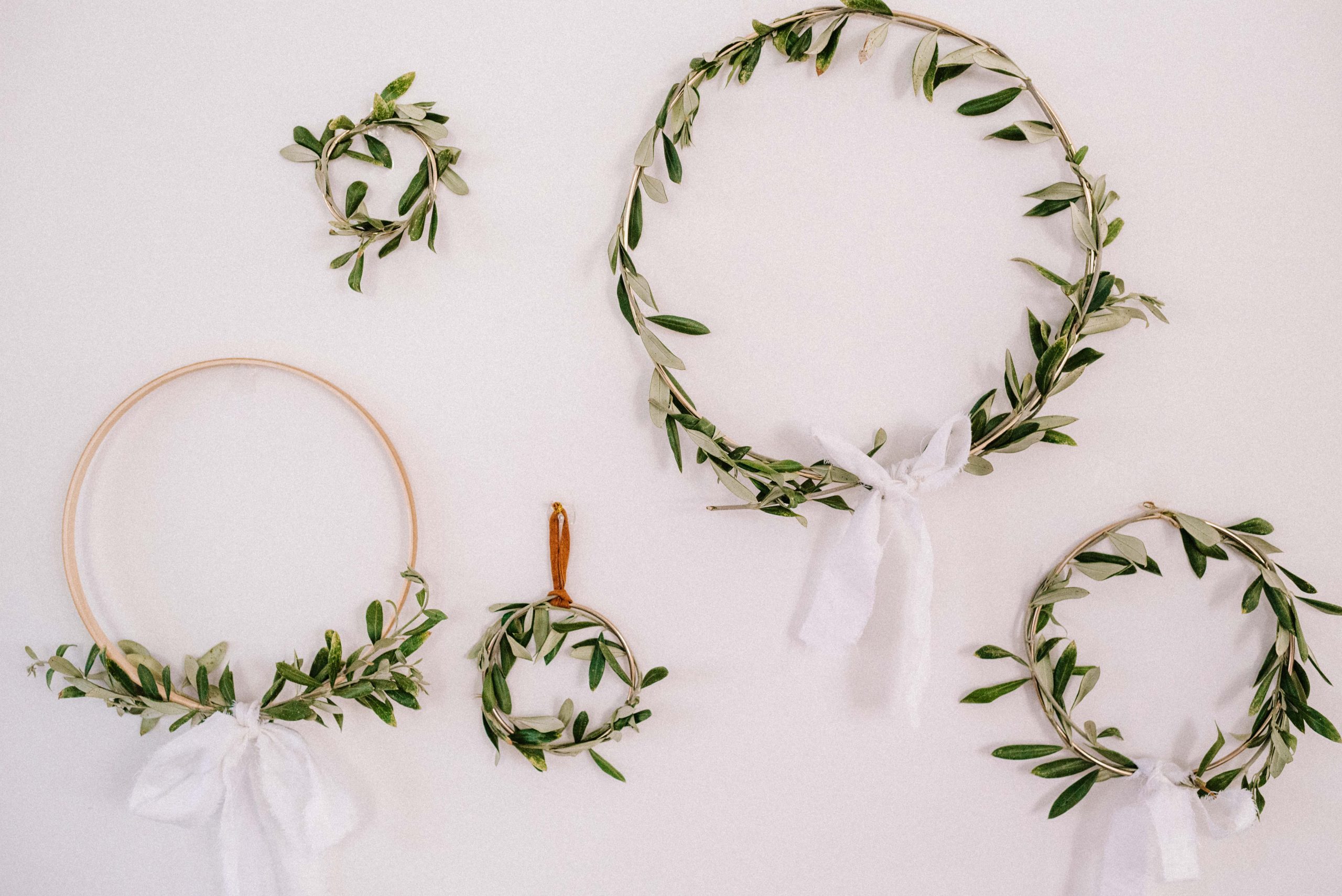 Next up, foliage! For me a natural table is all about looking at what’s around you and foraging for greenery. My neighbours had some olive in their yard and they let me have a few branches. I like to use the greenery in as many ways as possible to give the table an organic and cohesive feel so I put it in a vase, in wreaths and as place settings.