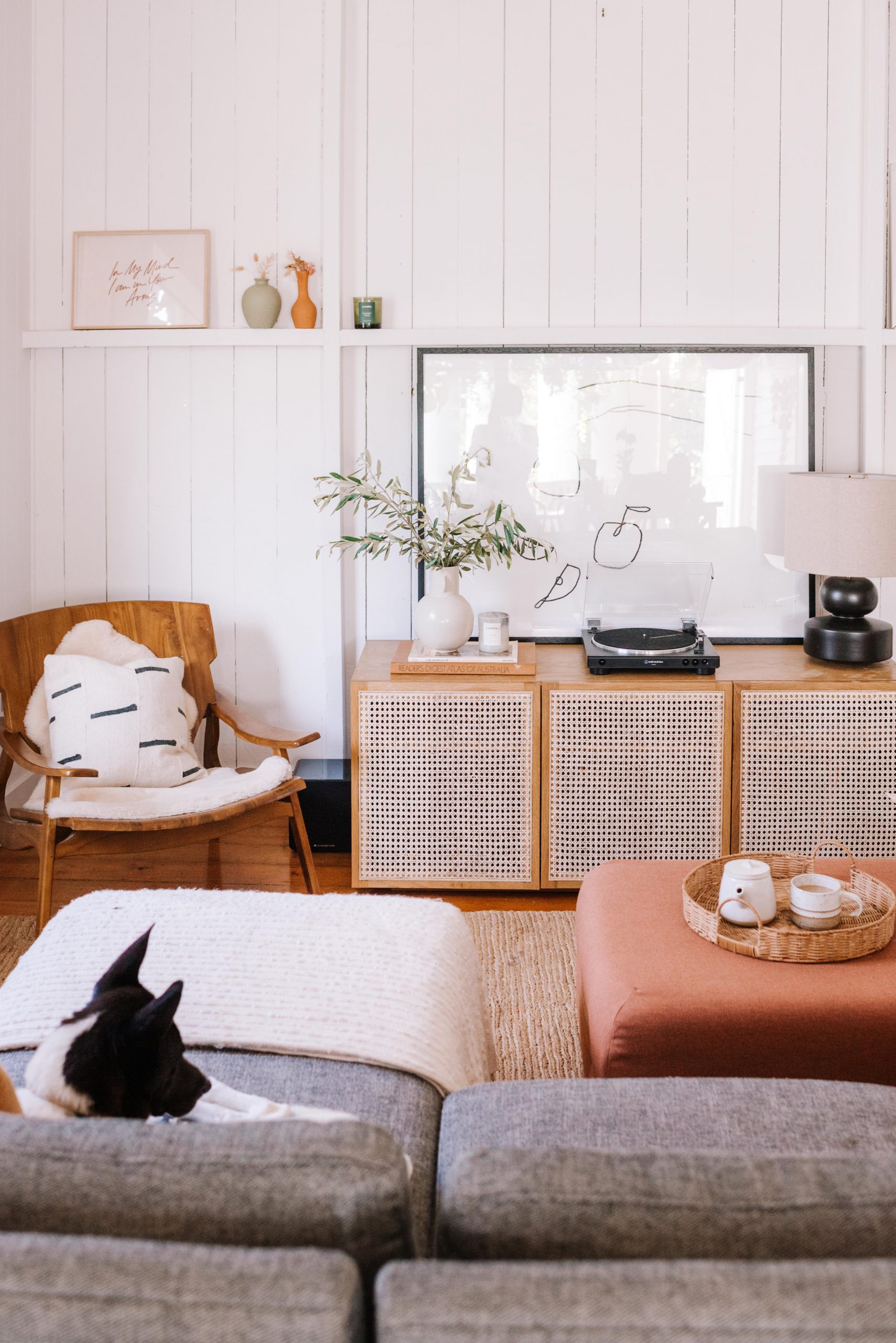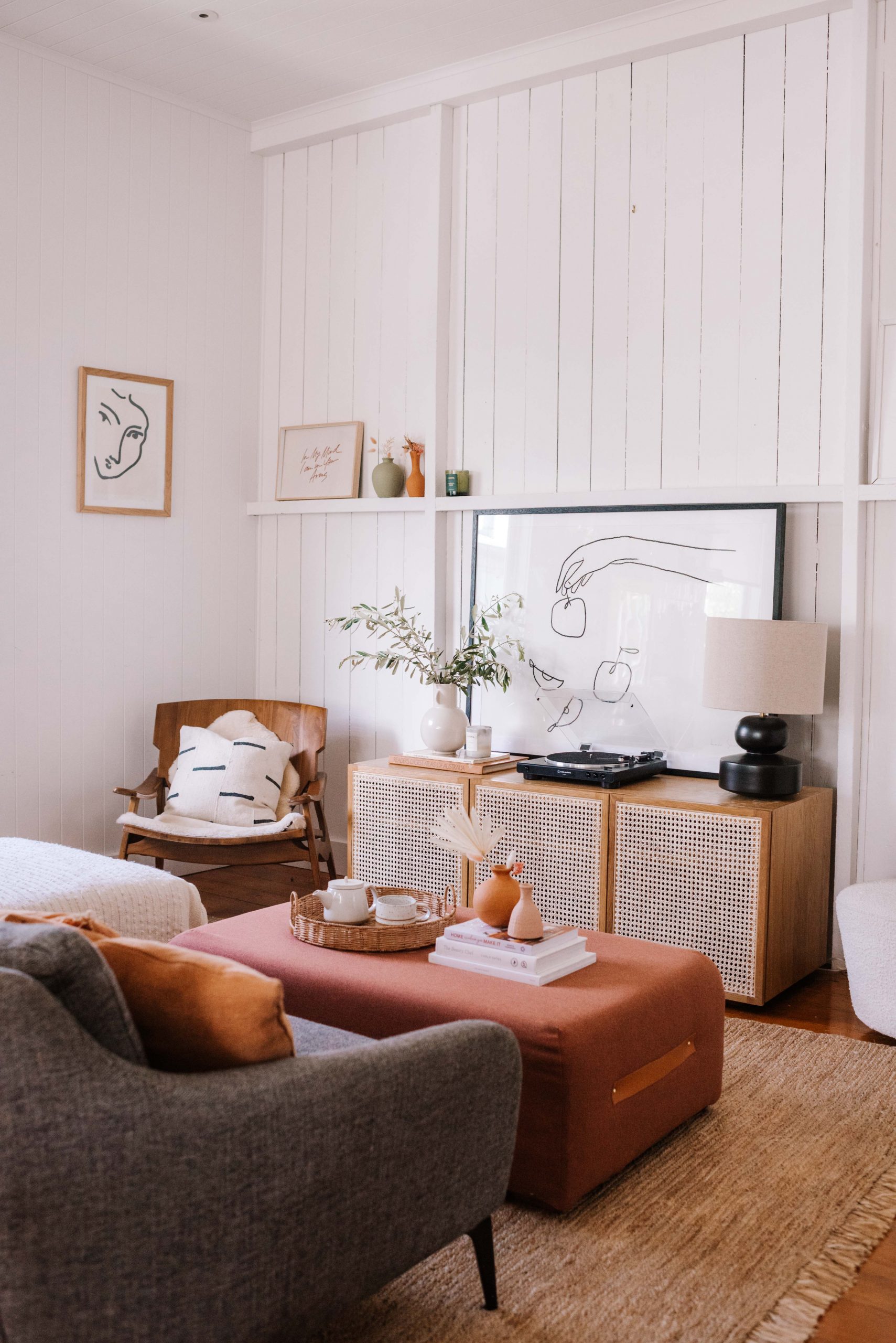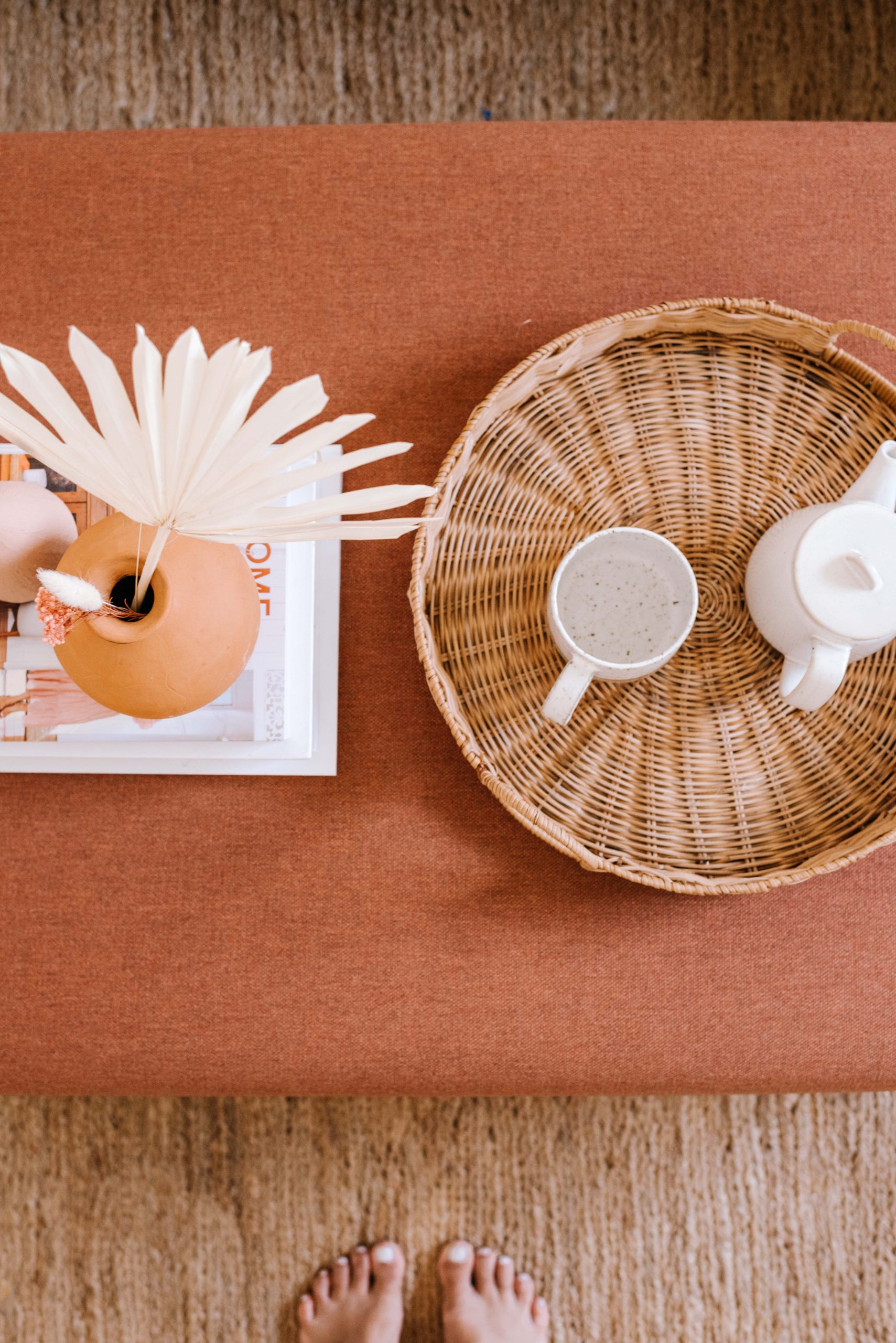 Whether it’s gotten a little worn or you don’t like the fabric or print anymore, it doesn’t mean you have to throw it away. That’s because they are so easy to update. A little while ago we shared a post about making your living room more family friendly, and in it we did an upcycle of an old ottoman using beautiful Sunbrella Blend Clay fabric. Lots of you asked for the detailed tutorial so here it is!