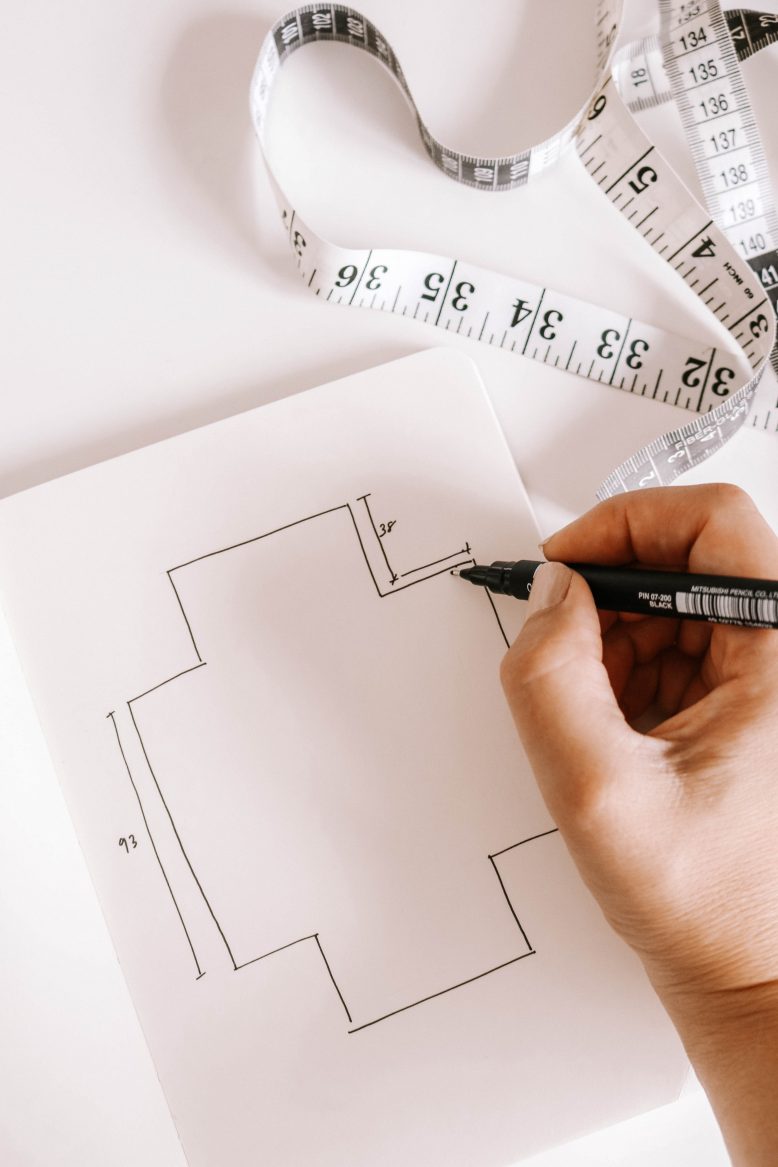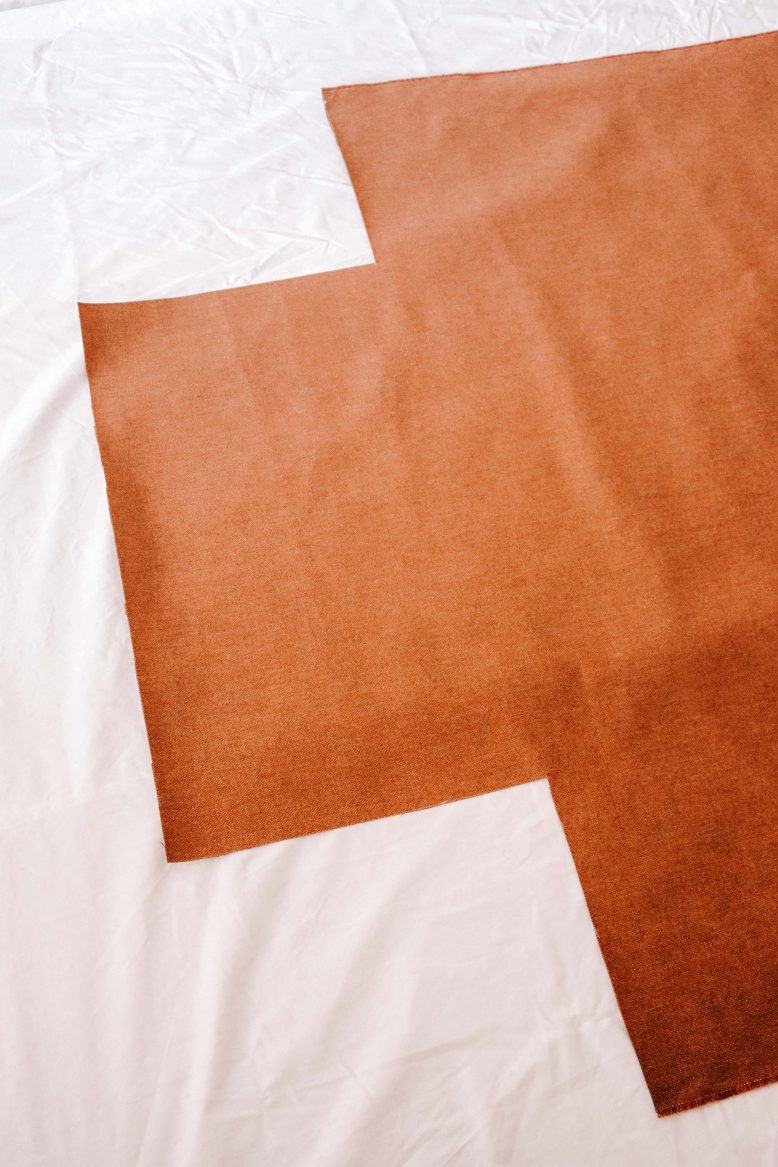 Sketch out your pattern to work out your seam allowances. We added a 1cm (¼ in) seam allowance to the side edges and 4 cm (1.5 in) to the bottom edges. Note: if your fabric is not wide enough as mentioned above, at this step cut out the sides and top as separate squares/rectangles (remember to add a 1cm (½ in) seam allowance for the top edges. Sew the top edges together to achieve the same ‘cross’ shape as step 5 (skip step 3 & 4).