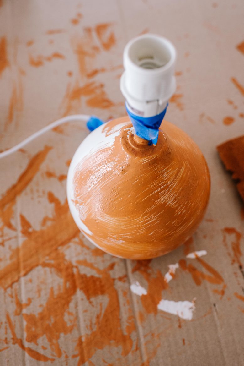 - Apply paint to the lamp base. See my Trash To Terracotta tutorial here.