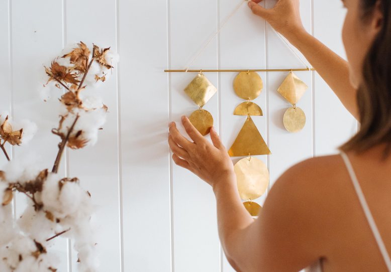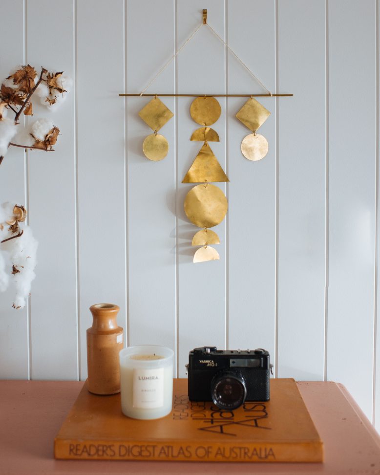 A while ago I created a clay wall hanging for our bedroom. I loved it so much that I wanted to test the concept out further and this time go for a metallic look. As I had hoped, this bronze sheeting looks really elegant and is a beautiful statement surrounded by all the softer colours and materials in our home.