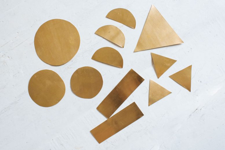 Cut out your desired shapes from the brass sheeting using metal snips or heavy-duty scissors.