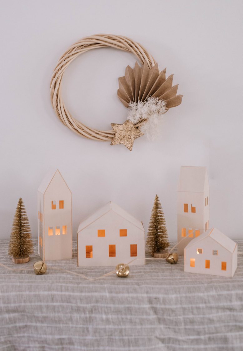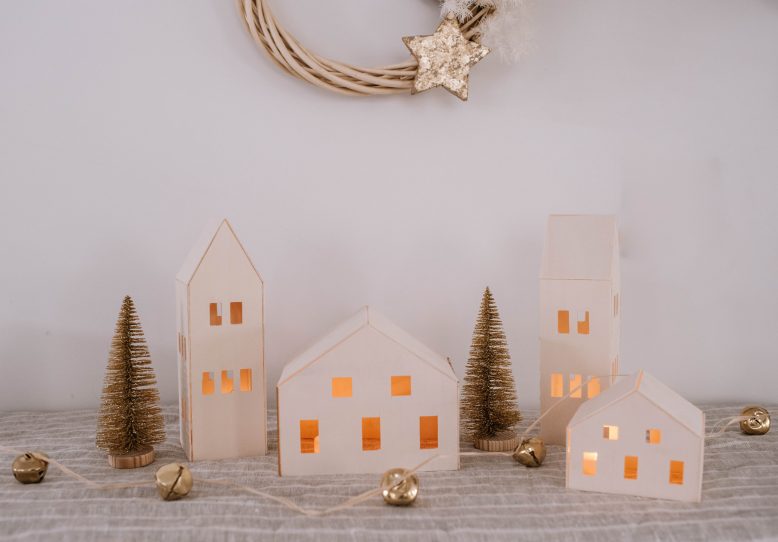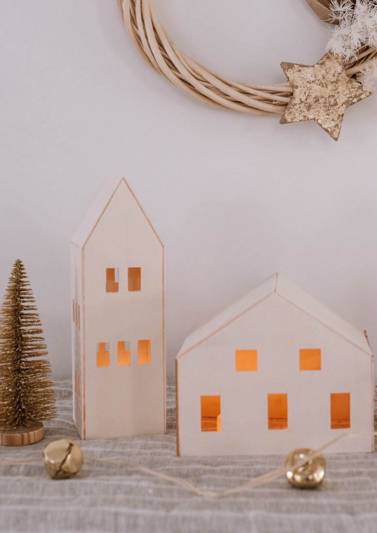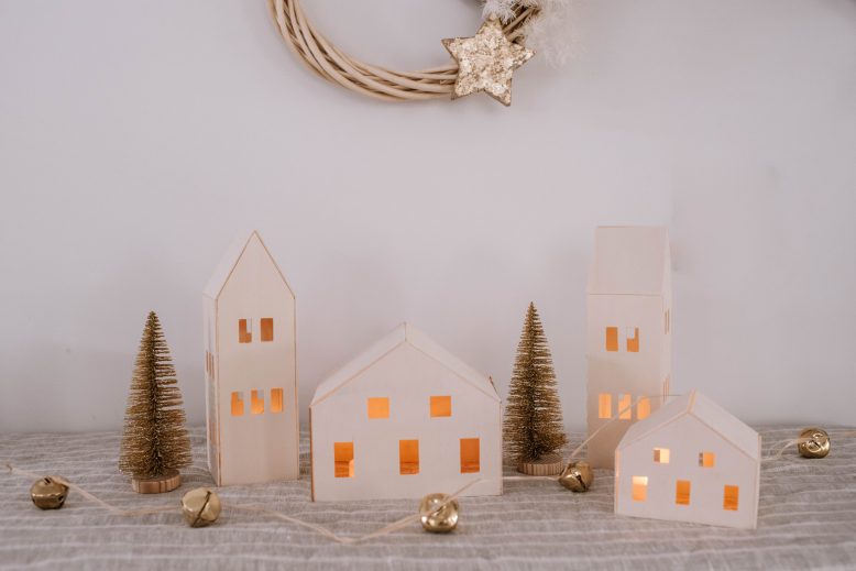 You guys know how much I love working with wood on the Cricut Maker! If you’ve been following here for a while, you’ll know that I made some cute cloud lights a while ago using Basswood on my Cricut Maker machine, and knew I would have to create something just as fun come Christmas. Well, enter this very cute (and easy!) decorative Christmas village. Read on for how I made it.