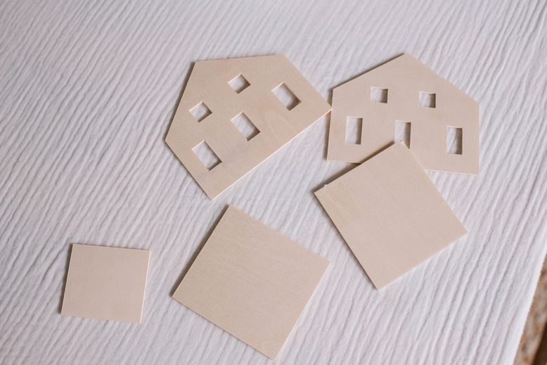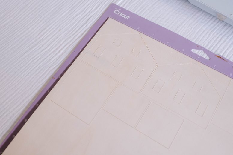 Once I was happy with the cuts, I took the mat and wood out of the machine and then pressed the house sections out of the larger piece of wood. I always keep any scraps too so I can use them for future projects.