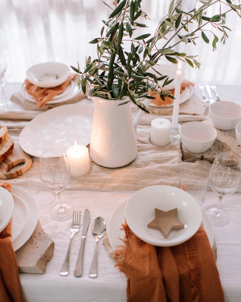 Table styling details: Dune Servingware from Maxwell & Williams, Wine glasses from Maxwell & Williams, Glass tumblers from Maxwell & Williams, Cashmere High Rim Dinner Set from Maxwell & Williams.
