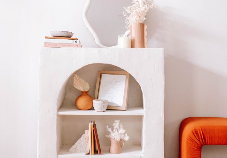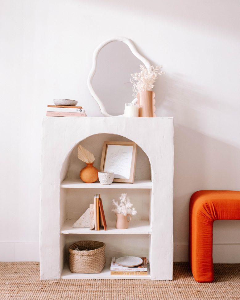 Now its my favourite part! Coat your whole shelf in plaster (multi joint compound) until its completely covered. You may need to do a second coat if there are areas that you want to build up a little more or the texture isn't quite right. Give it a light sand after any coat. It's like icing a cake, its so satisfying. Then all that's left to do is style your beautiful new shelf.