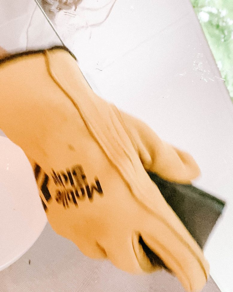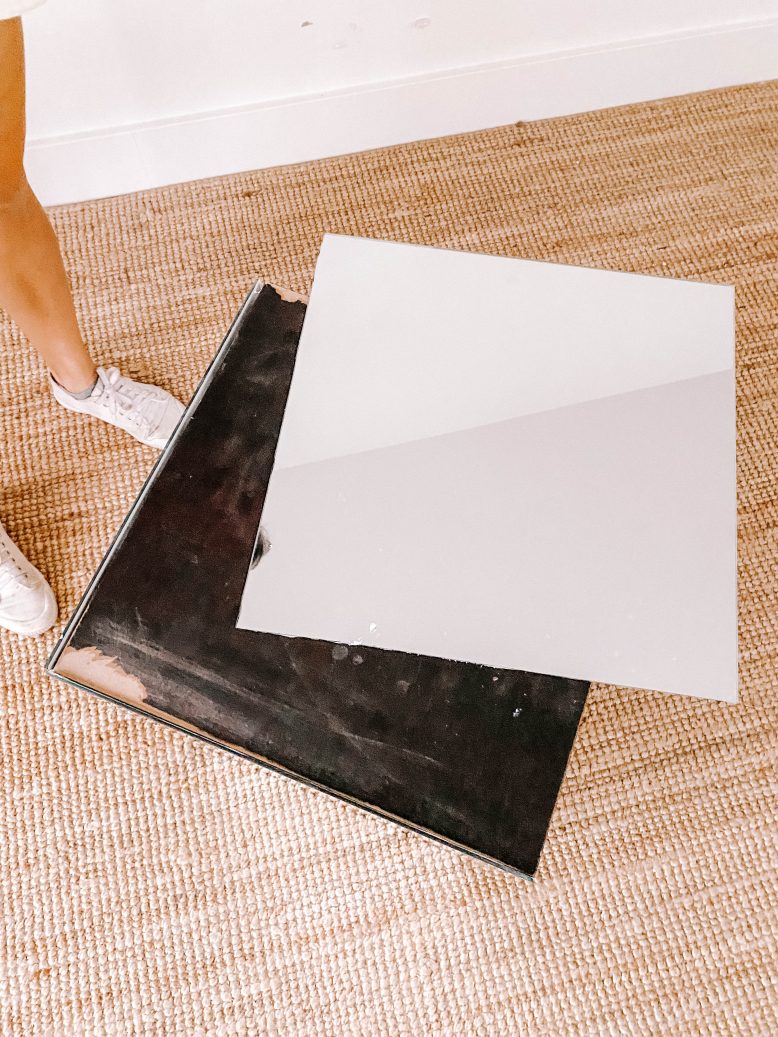 Next ups it's time to cut that mirror! I then measured and marked where I needed to cut my mirror, with 4 pieces being exactly the same size, and the top was a square shape.