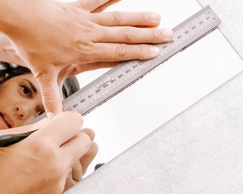 Cutting mirror can be tricky so definitely take it slow, and considering using the extra end of the mirror, the one you'll cut into a square, as a tester first. Mark your line with a pen, and then place your ruler down as a guide. Press the cutter down where you see the wheels, and press until you hear it cut in a little. Firmly pull your hand down, making sure not to lose contact. You should hear a screeching noise which means you're doing it right. Try to avoid lifting the cutter until you get to the end, and only do one long cut, making sure not to go over and over the mirror.