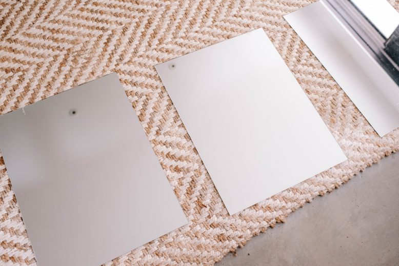 If you have any less than perfect edges of the mirror, position them all on the same side, with the original edges facing out.