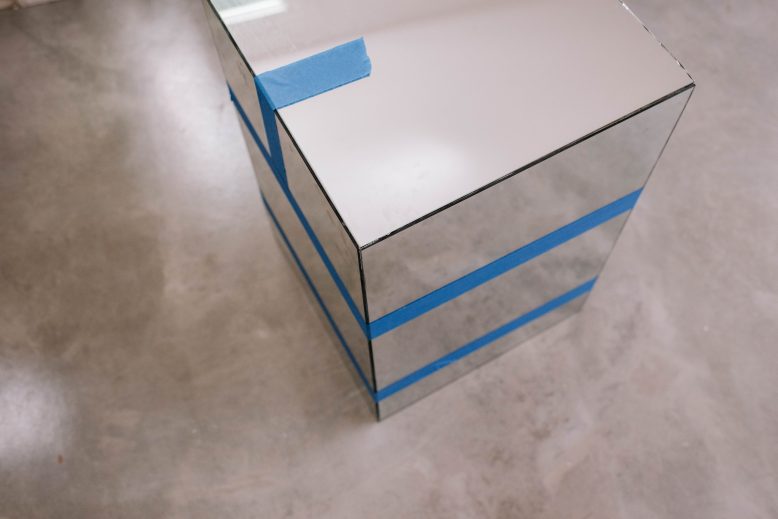 Finally, I allowed the glue to dry overnight with some tape to keep the mirrors in place.