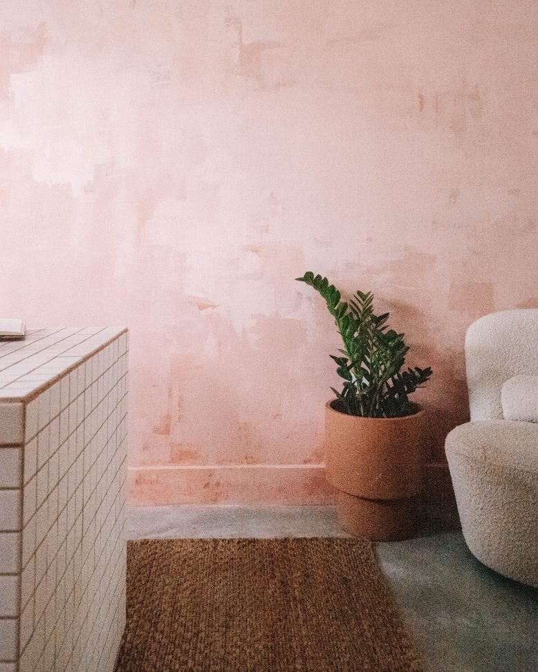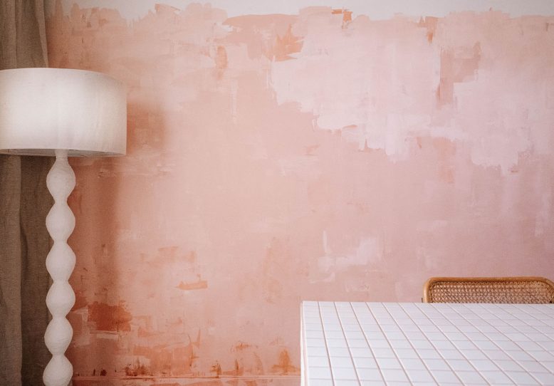 I also added a few lighter tones of pink at the top and darker tones of pink at the bottom, to ground it a little more, without being too ombre. Once I was happy with the pinks, I added a very small amount of Natural Paprika, scraping it up from the bottom and sides of the wall. Less is more with this, I just wanted to add some depth and ground the wall, almost to make it look more aged.