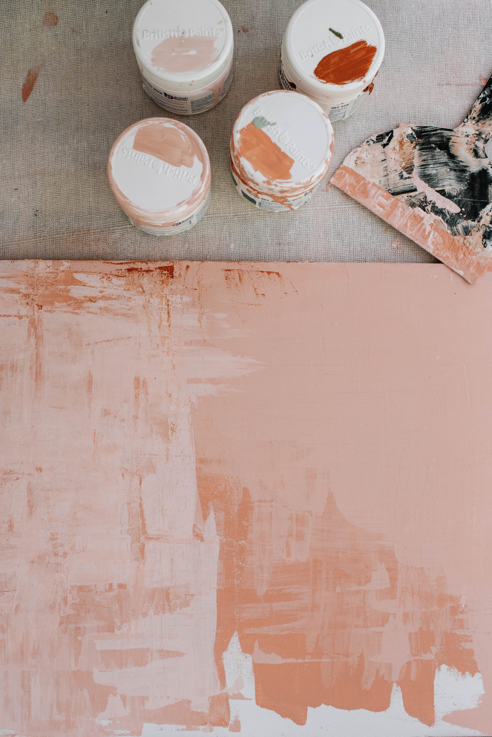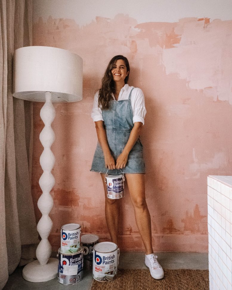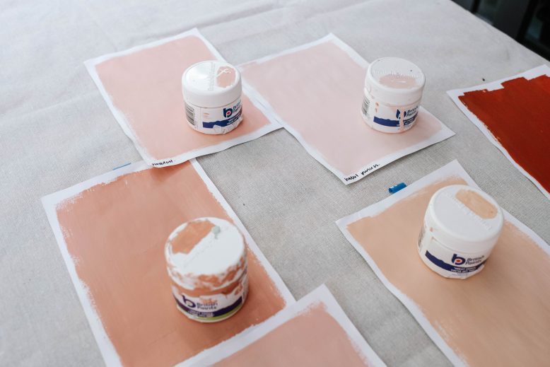 I worked with British Paints on this project and spent quite a bit of time testing their colours to make sure I chose the right ones. In the end I chose Forever Peach, Rose Candle, Ballet Princess and Natural Paprika. I decided to use 3 different shades of pink and then one darker colour just to add a small amount of detail at the bottom. I think it’s important when creating a plaster/aged finish with paint that the colours are quite similar.