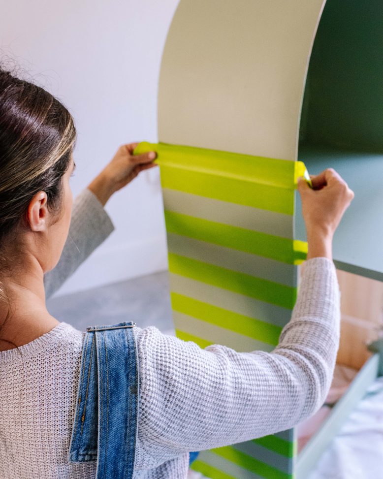 Because this piece was for my girls, I decided to add some pink stripes to brighten up the piece and make it a bit more playful for their bedroom.