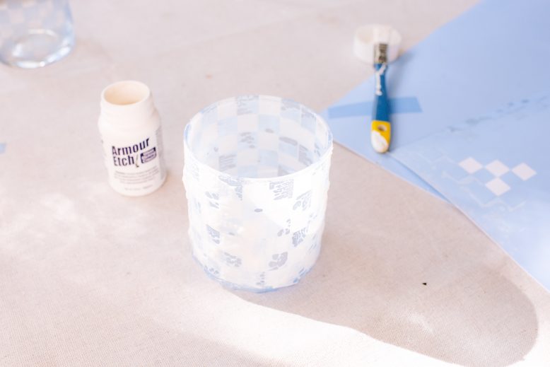 In this project I’ll be etching on glass using etching cream. Etching cream is a fast acting compound that lets you create permanent etched designs on windows, mirrors, or in this case, household glassware! Cool right? The result is dishwasher and food safe, which is pretty amazing! This was my first experience with etching cream (I used Armour Etch) and I found it very simple to use, however, I would highly recommend wearing gloves whilst using it as well as eye protection and a mask. That’s because it can cause burns if not handled properly.