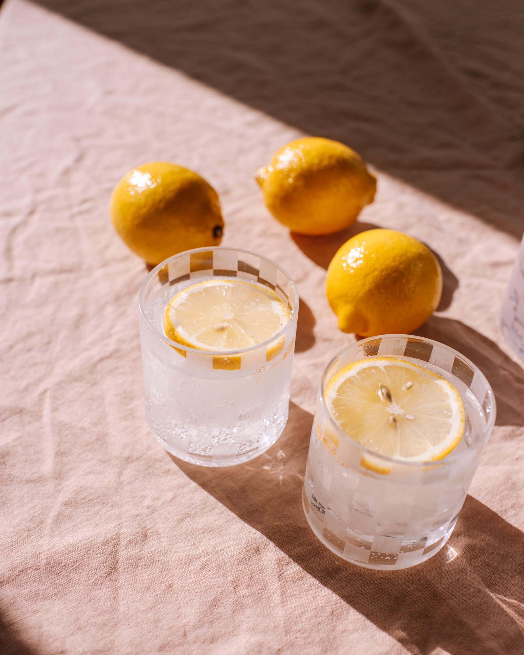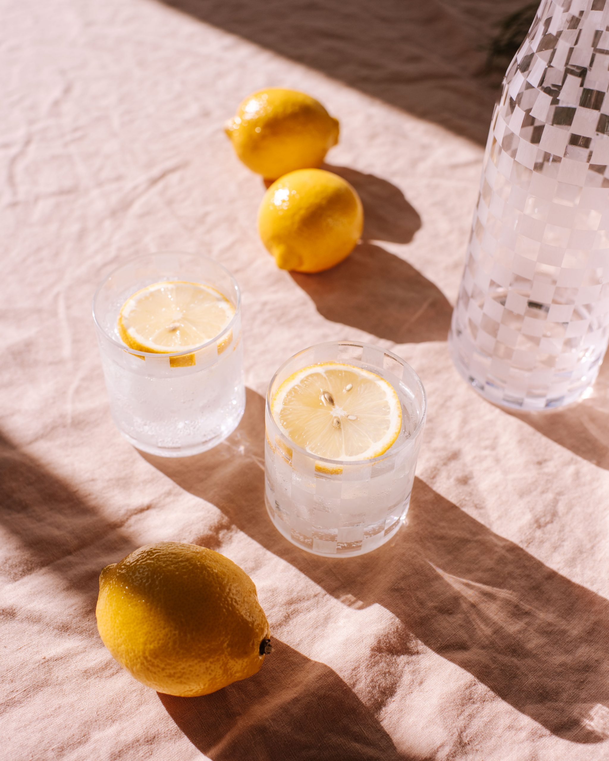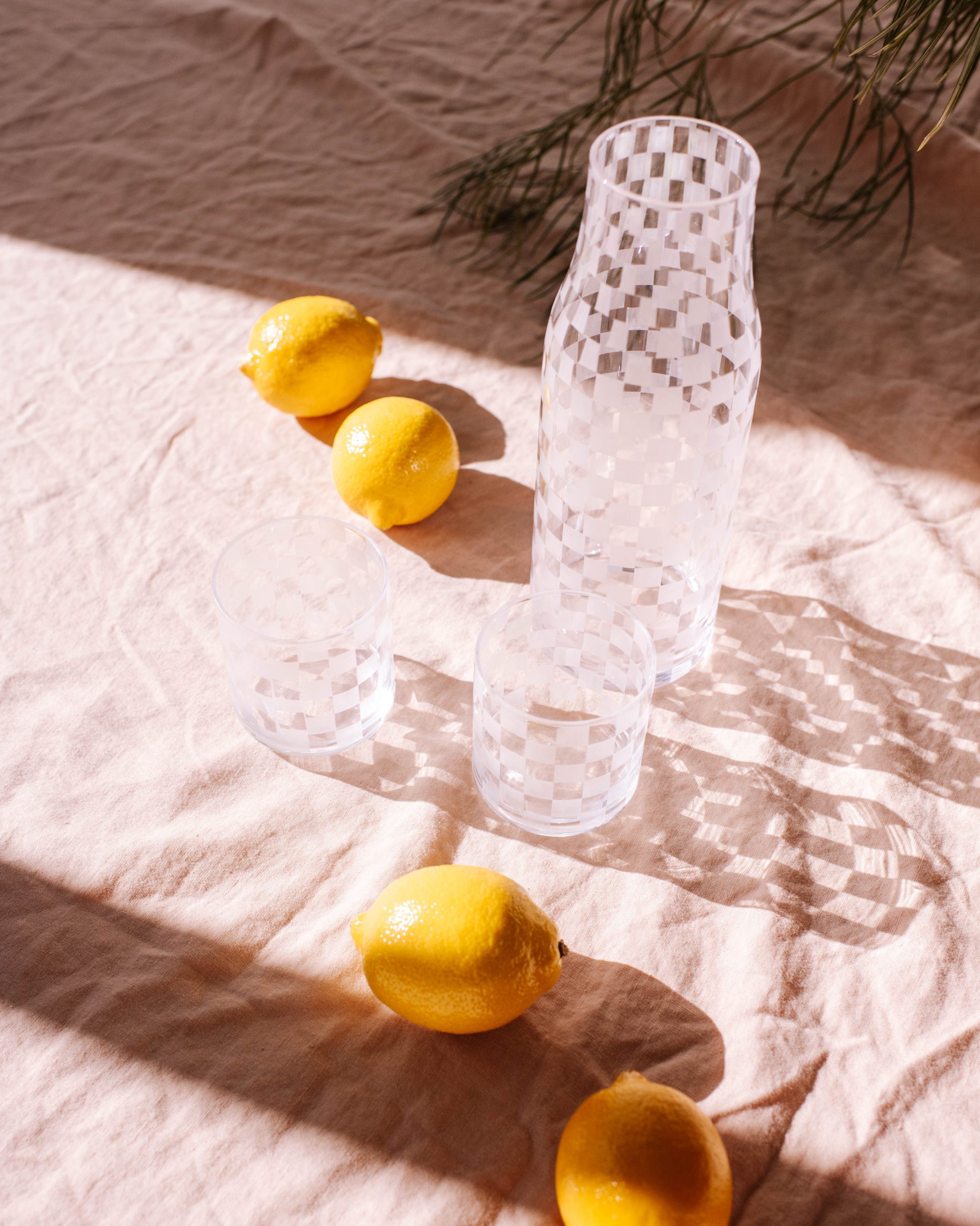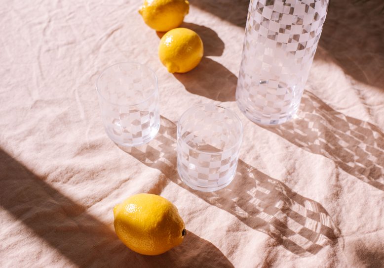 And there you have it, a cute checkered glassware and carafe set made using basic thrifted pieces! I loved how easy this project was thanks to the amazing new Smart Stencil Material and I can’t wait to experiment more with it!