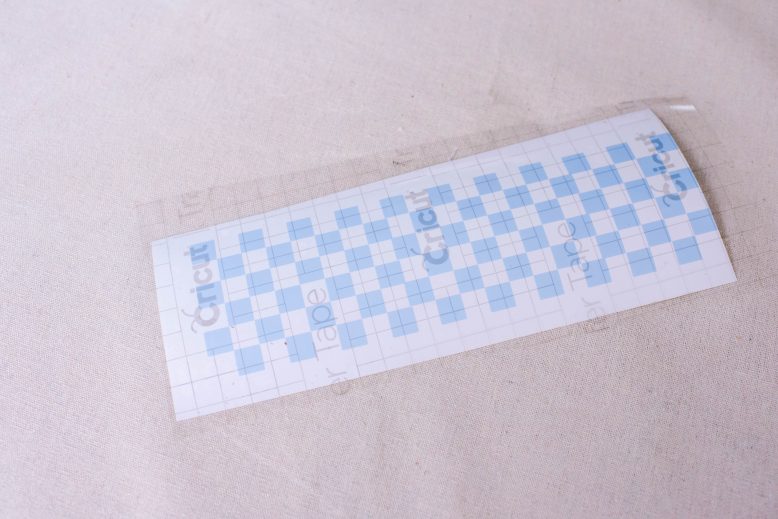 I then took some transfer tape and pressed it onto the checker pattern, carefully pushing it down with the scraping tool. I actually cut the checker pattern and applied it in sections, as I found this was the easiest way to keep it straight.