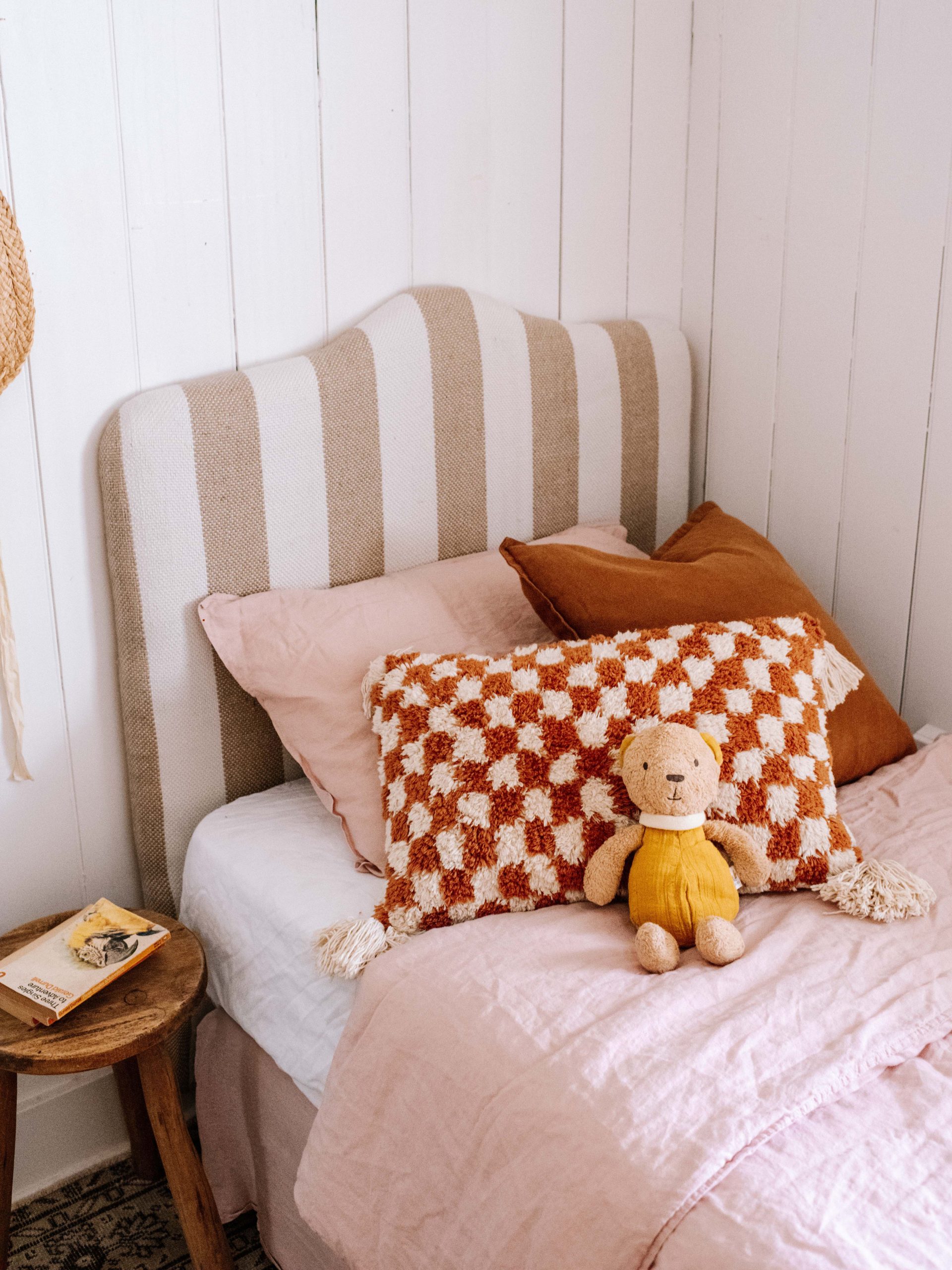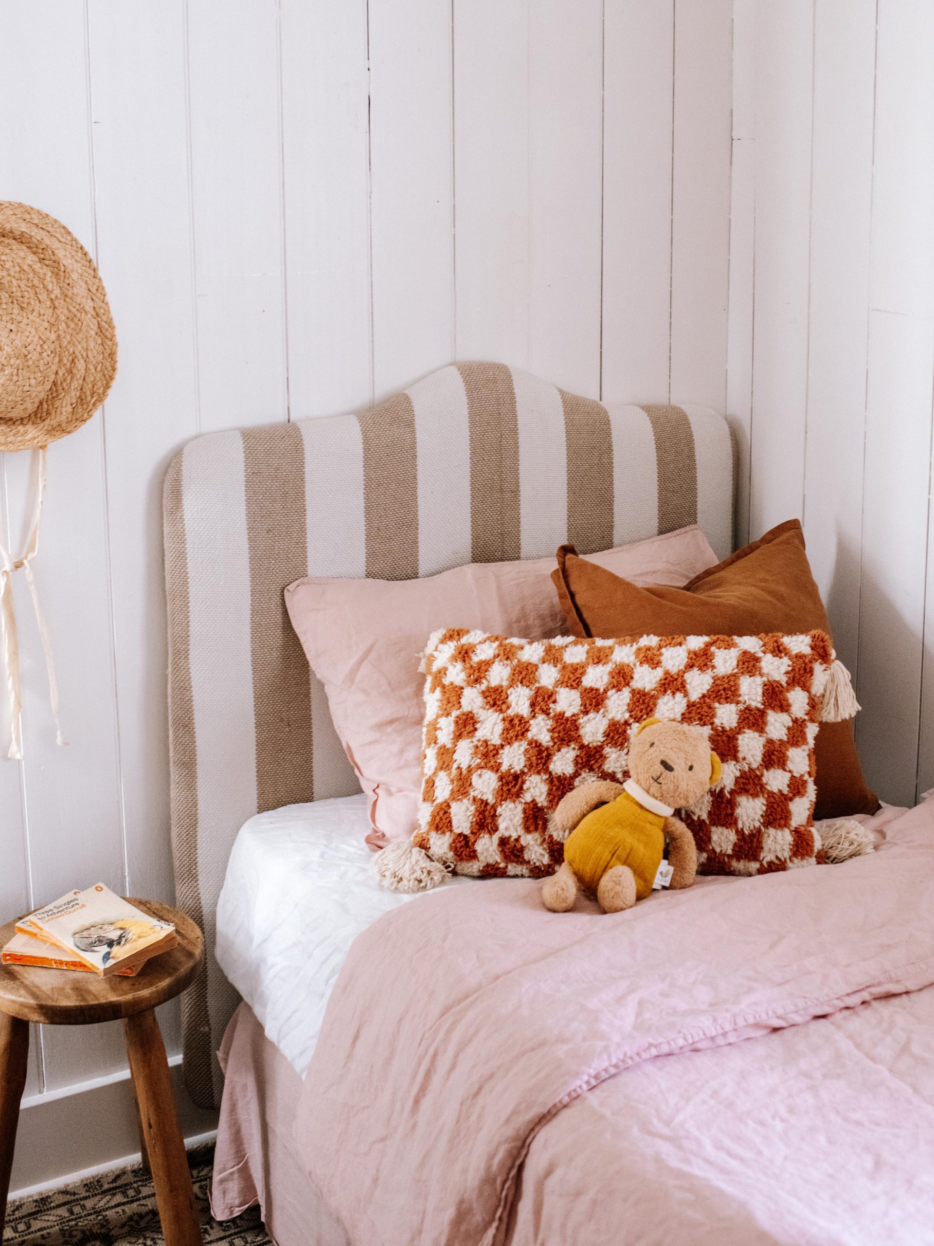 When I saw a bright pink kids headboard sitting on the side of the road, initially it was a NO from me, but then I remembered I’d wanted to make a little bed for my niece who has started staying over, and thought maybe I could rescue this piece. Read on to see how to make an upholstered kids headboard.