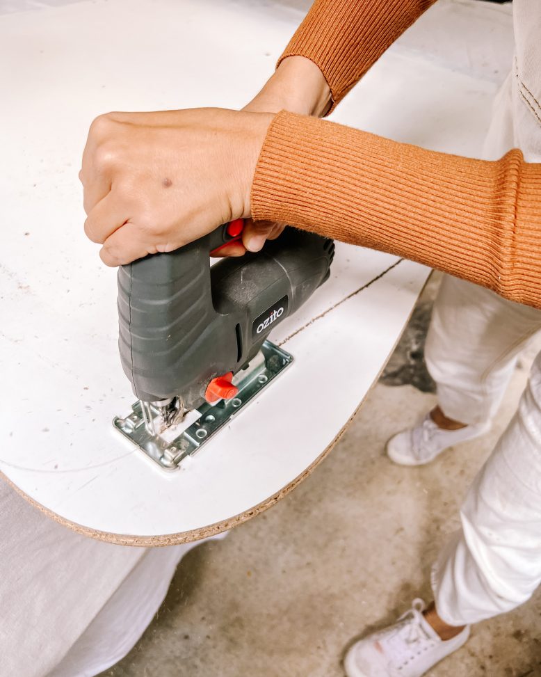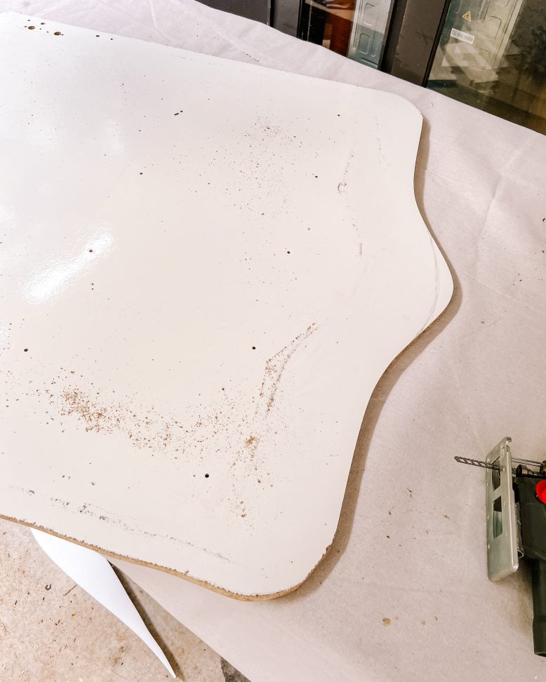Next I gave it a bit of a reshaping with my jigsaw and then removed any old, worn off bits from the bottom.