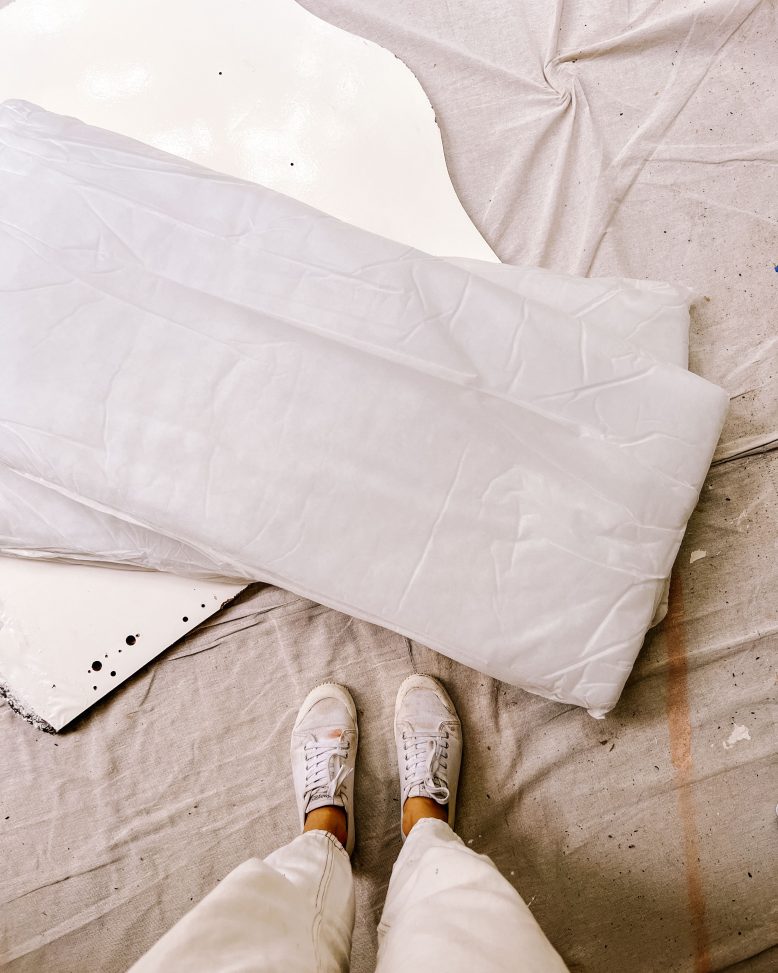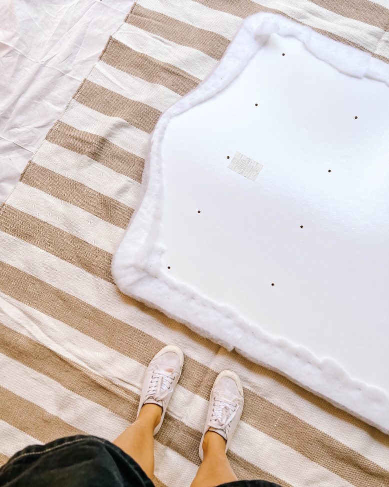 The rug I used for the upholstering part of this project was actually really big and could definitely be used for an adults headboard. But because I was upcycling a children's headboard, there was so much excess fabric that I needed to trim it a bit.
