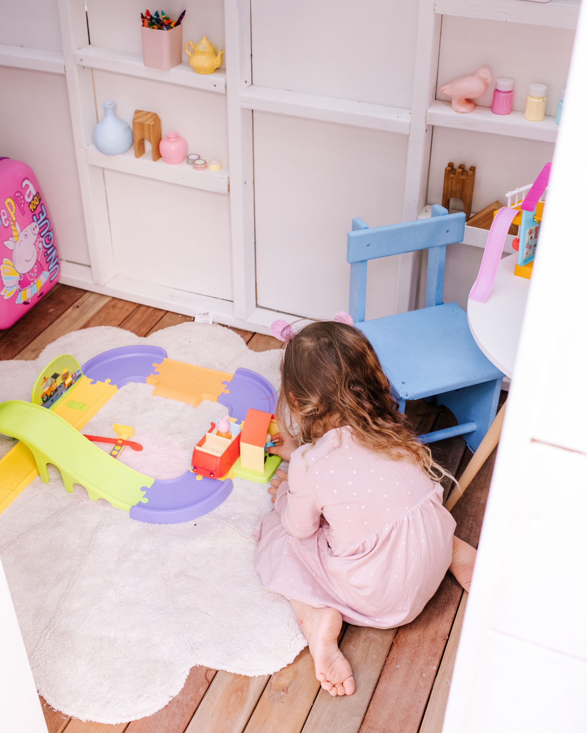 To finish things off, I filled it up with some seriously cute Peppa toys (including a mini Kids Only Clubhouse!) What I loved most about this project was the fun, colourful and playful aspect to it all. I was able to select colours that I love but don’t usually have the chance to use and the freedom to play around with design ideas that I wouldn’t normally use indoors.