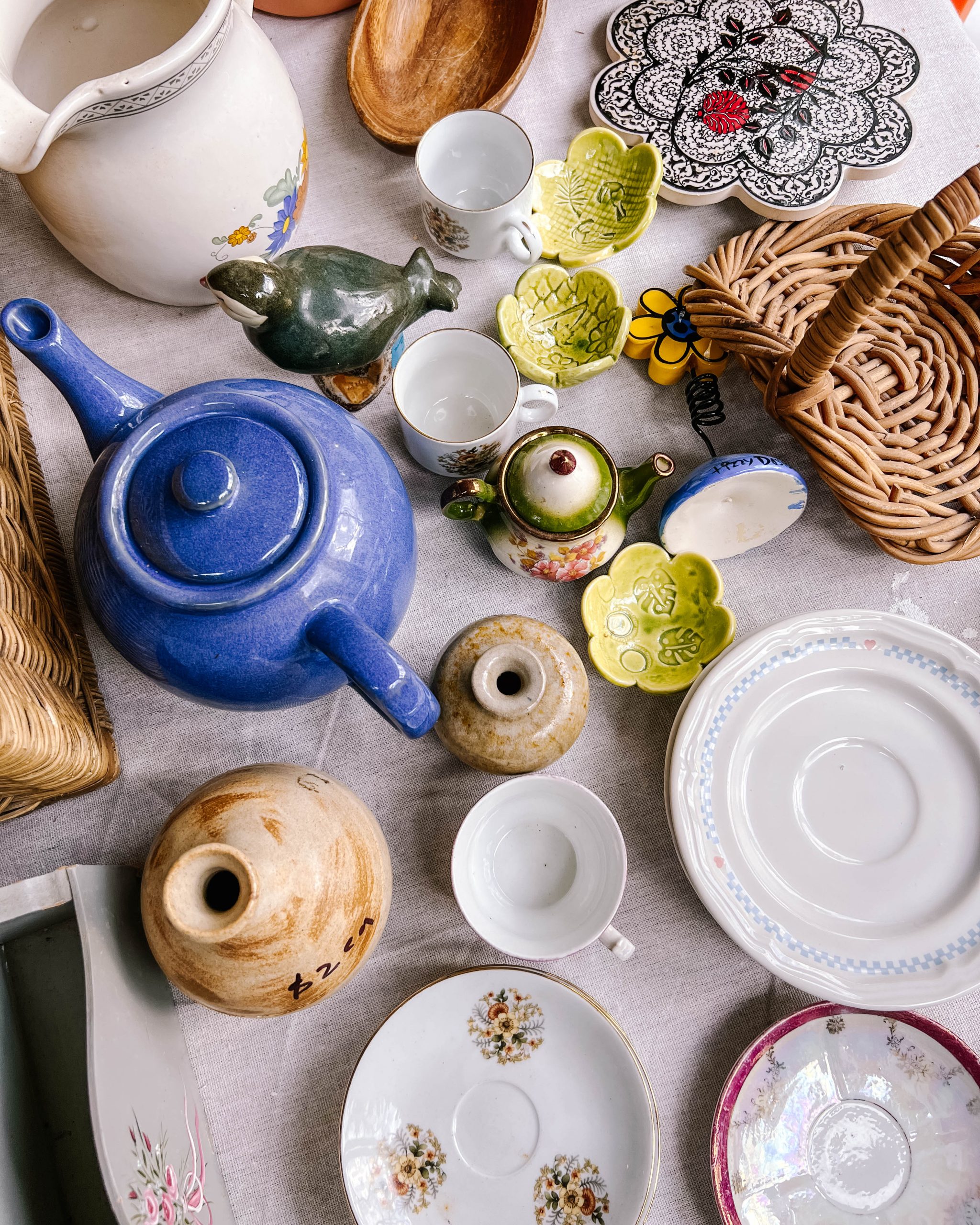 Now for the best part – decorating the inside! We painted the interior white because I thought the colours from all the toys and odd and ends would fill up the space with enough colour. I’m glad I did this because I love how much the colours pop against the white walls and I feel like it would have been a bit overwhelming if we decided to go with another bright colour. To keep the cost down, we found the majority of the odds and ends that go inside the clubhouse at my local thrift store. I wanted these pieces to encourage the girls to play with their imaginations and create the feeling of this being their little house, restaurant, castle, or whatever they decide they want it to be that day. These pieces included a few little stools, a tea pot and tea cups and some simple figurines and vases.