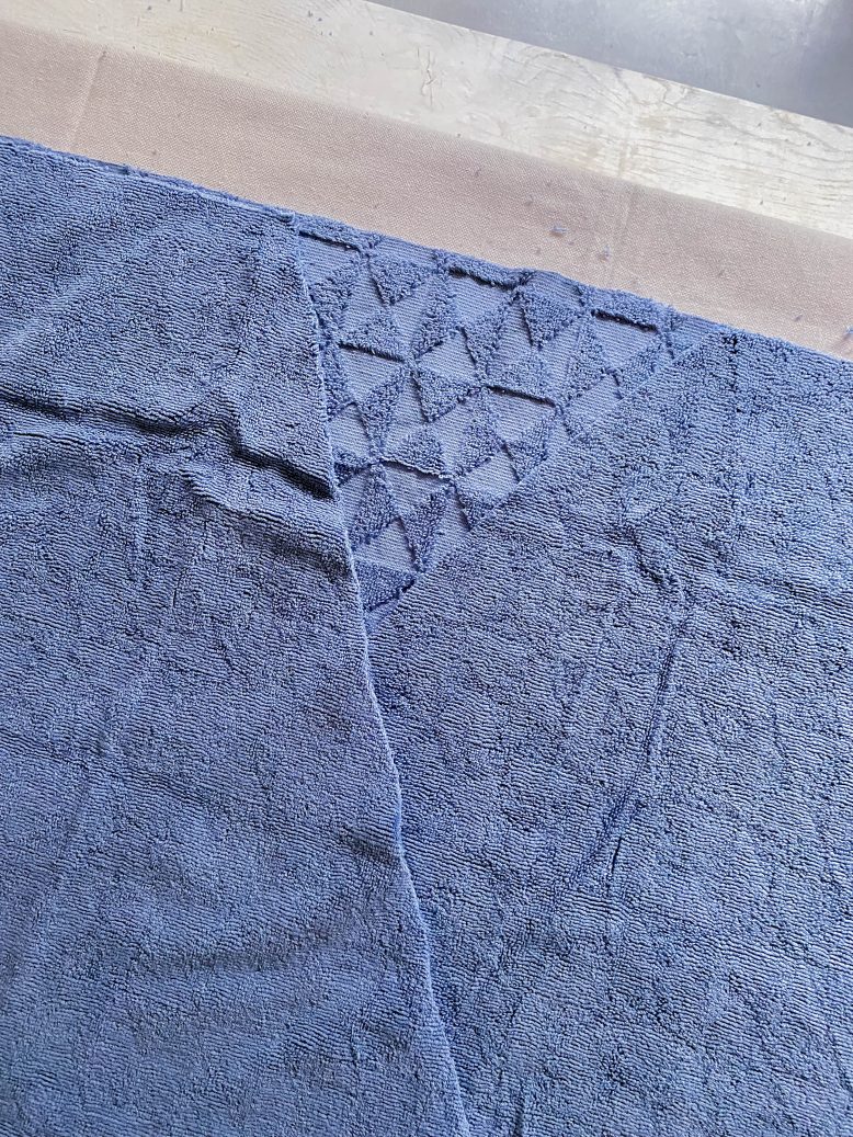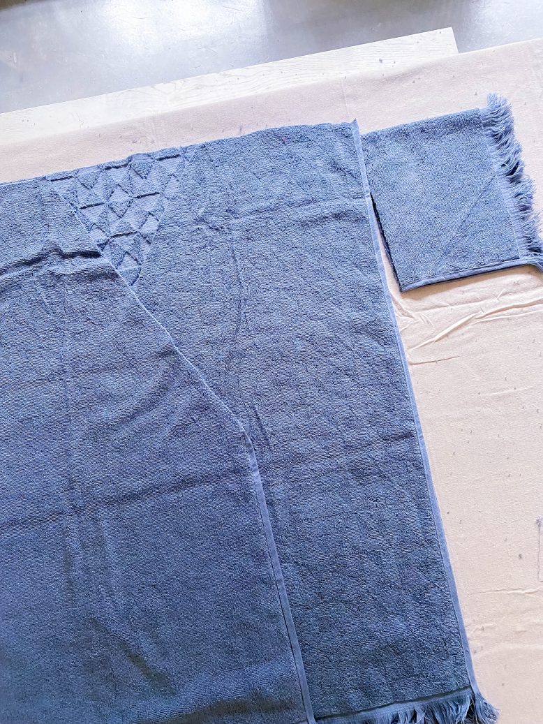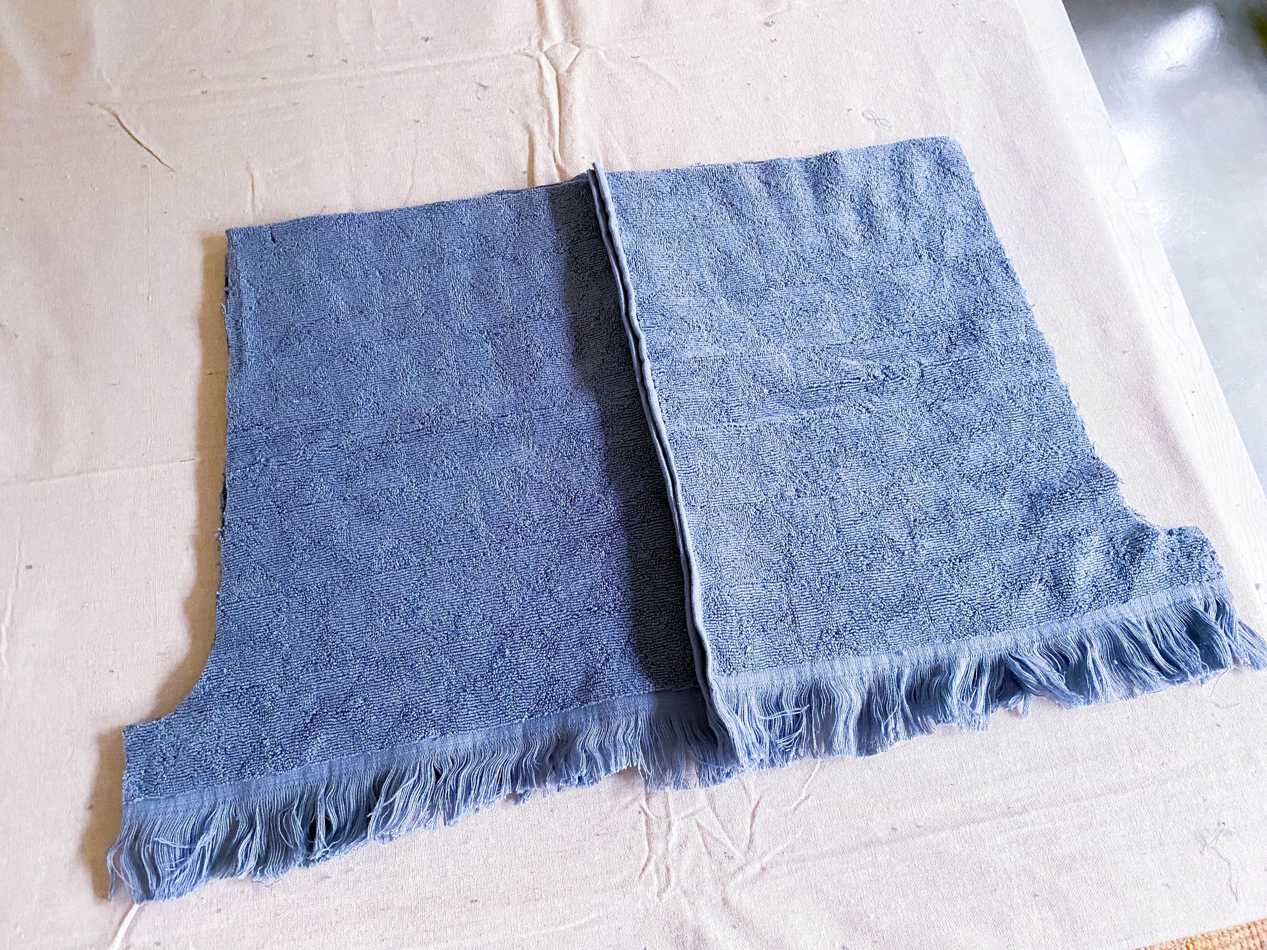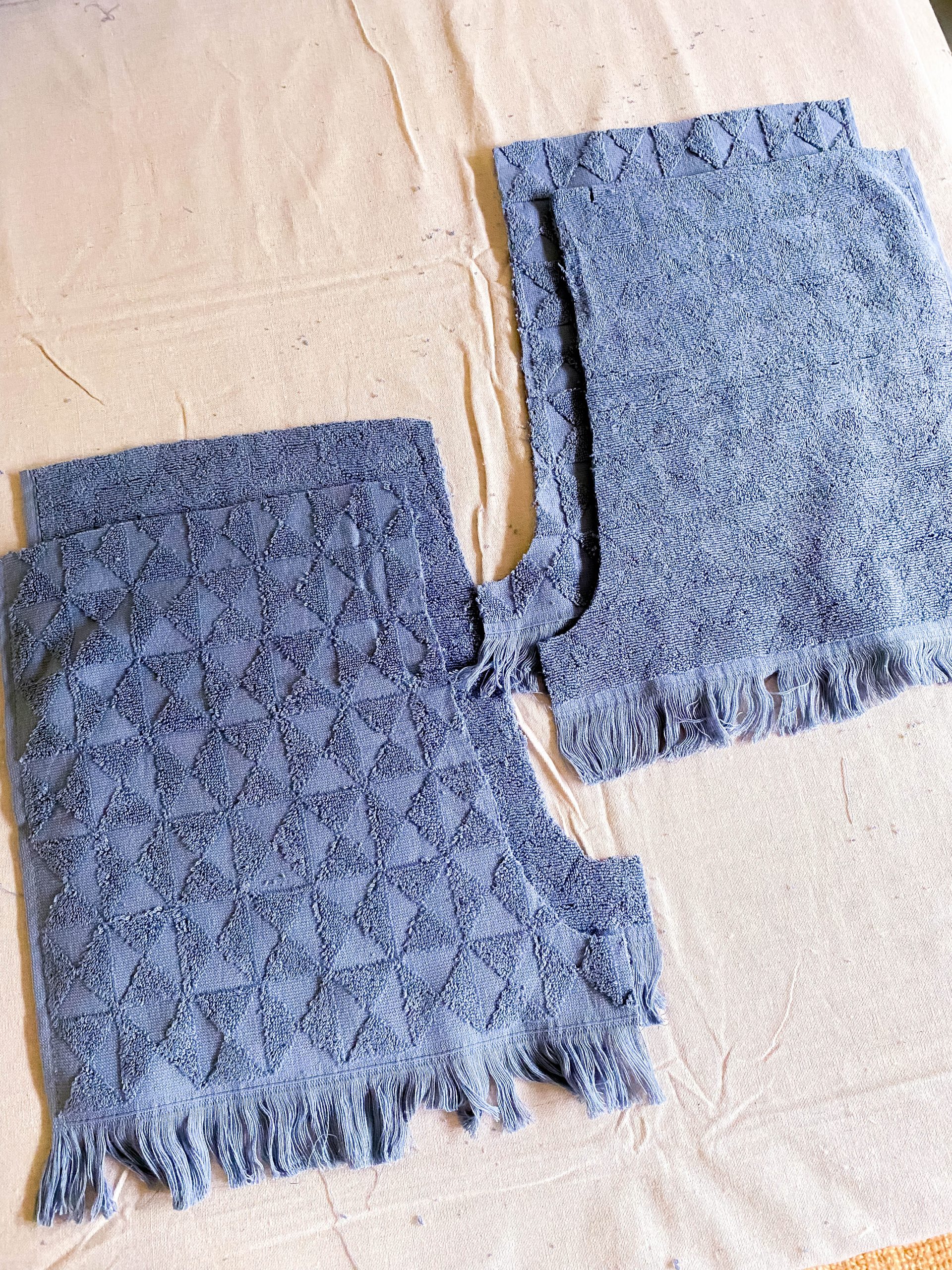 For this project, I used this tutorial of a linen robe made previously, and just simplified it, so I used the tassel edge instead of hemming. Something important to note about this tutorial is that I used one bath towel for the back, and two hand towels for the front, because the hand towels I found were unusually long. If you can only find bath towels I suggest using two, and simply cutting one down the middle to create the front opening. The robe won’t have as much overlap but I’m sure it would work fine.