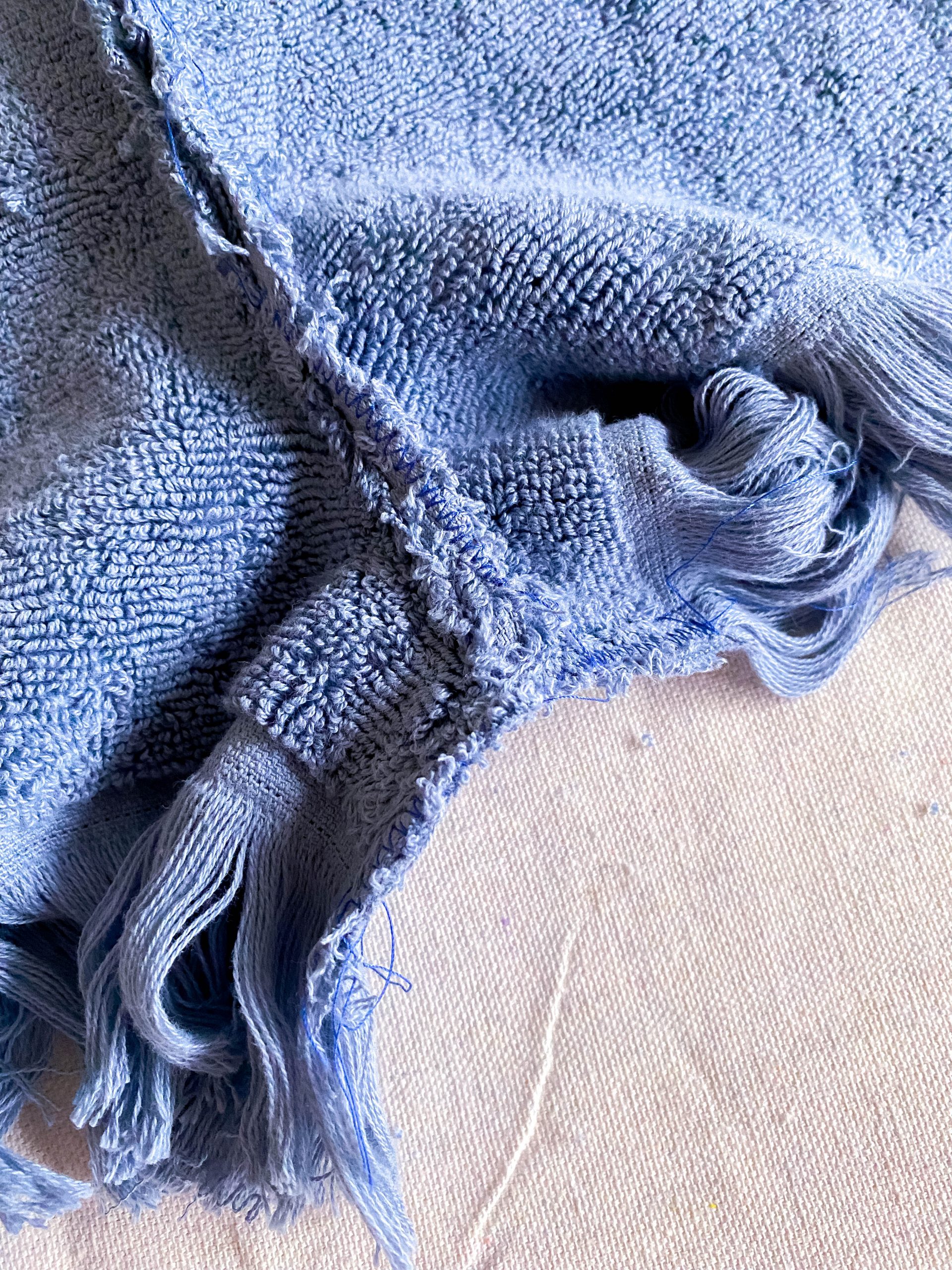To make the sleeves, I used the leftover pieces of hand towels and simply folded them over, positioning the tassel edge on the end. You can also cut some to the right width and length from normal towel, if you don't have any leftovers. Simply check that your arm fits!