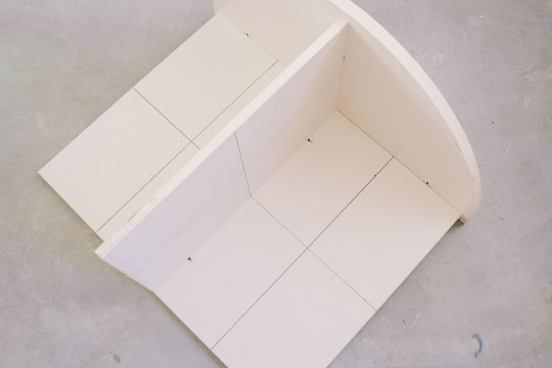 For the top edge, I really loved an inspiration image I saw that had a brass edge, but I couldn't find any nice thick brass so I just cut some MDF and sprayed it gold.