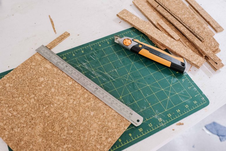 The first thing I did was plan the design of the layout of the cork tiles. To do this, I played around and decided a kind of brick style pattern would look the best (aka a 'running bond'). I then used a ruler and pen to mark out the pattern.