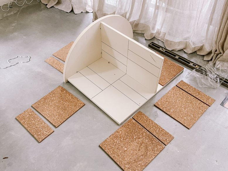 I’ve been noticing cork everywhere for the last year or so, and I was so excited to finally get a chance to use in in our space! There are lots of cork products you can use to do DIYs, Bunnings have a thinner adhesive one that would be great for some projects, but in the end I went with a cork tile which is thicker and I think has a better feel.